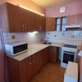 Pronájem bytu 2+kk, který se nachází ve 4. patře zatepleného panelového domu v ulici Josefa Ševčíka 957, Most. Je zde nová kuchyňská linka, el. deska...