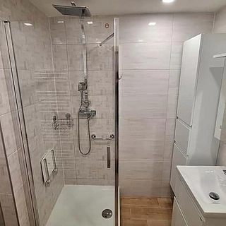 Prostorný vybavený byt v prvním podlaží vily, osobní vlastnictví. Obývací pokoj je spojen s kuchyn, ložnice a šatna, k dispozici je koupelna se sprchovým...