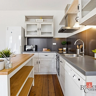 Nabízíme na prodej pěkný, prostorný, vzdušný byt 4 + kk (88,06 m2) s vysokými stropy po rekonstrukci (koupelna, kuch. linka vč. spotřebičů,...