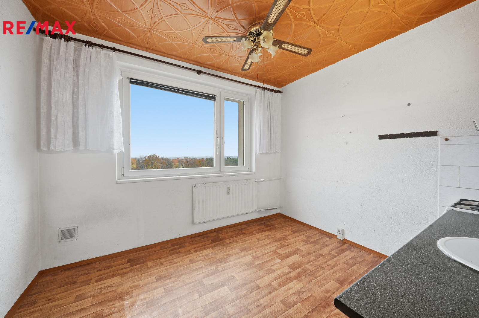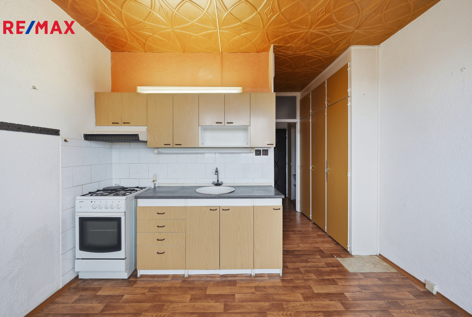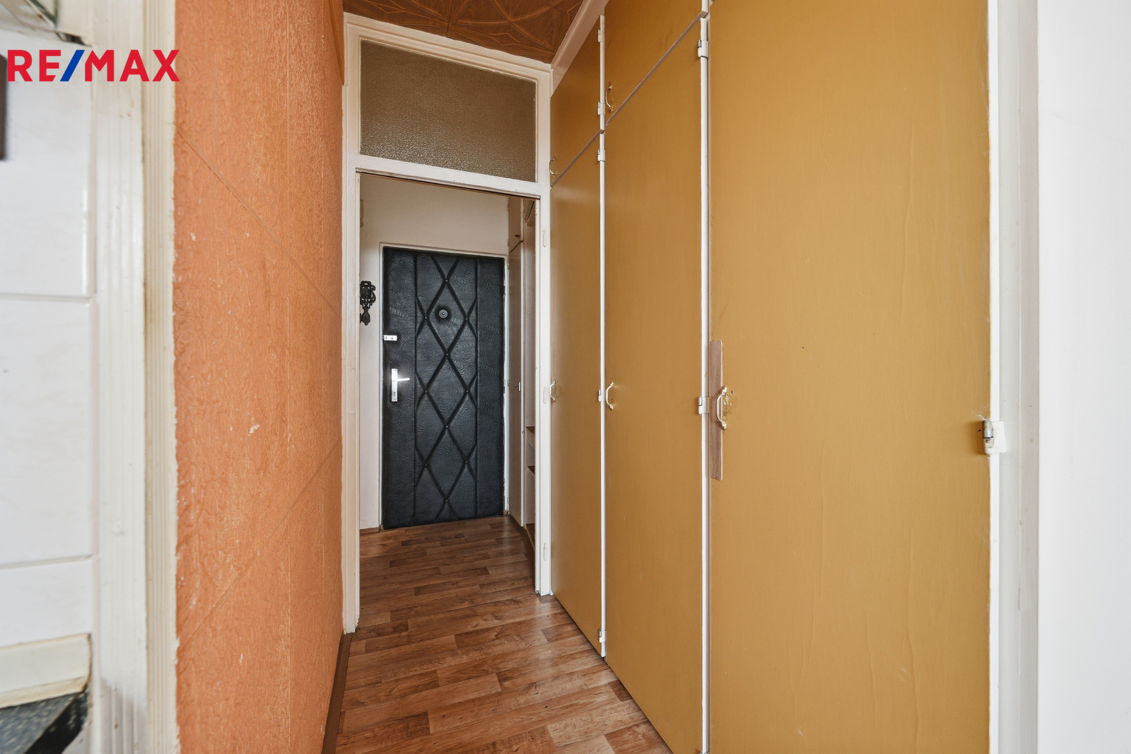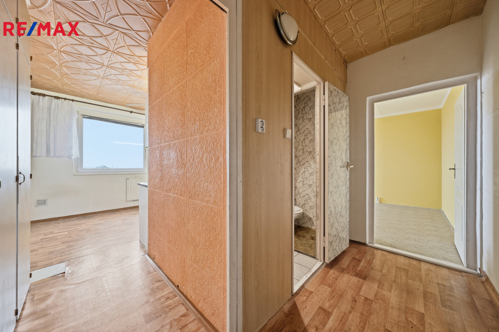 Byt o celkové výměře 39 m² je v osobním vlastnictví a náleží k němu sklepní kóje i balkón umístěný v mezipatře, který je určen výhradně pro tento byt. Interiér je v původním, ale zachovalém stavu – čistý, vyklizený a připravený k okamžitému nastěhování nebo rekonstrukci podle vlastního vkusu. Dispozice je chytře řešena: z předsíně se vstupuje samostatně do kuchyně, do koupelny s toaletou a do hlavního pokoje - ne jak je tomu běžně u tohoto typu bytů, kdy se do ostatních prostor vchází až z kuchyně. Kuchyň je vybavena funkční kuchyňskou linkou a kombinovaným sporákem s plynovou varnou deskou a elektrickou troubou. Koupelna s vanou a toaletou je součástí původního umakartového jádra, ale v udržovaném stavu. Z pokojů je výhled orientovaný na parkoviště před domem.