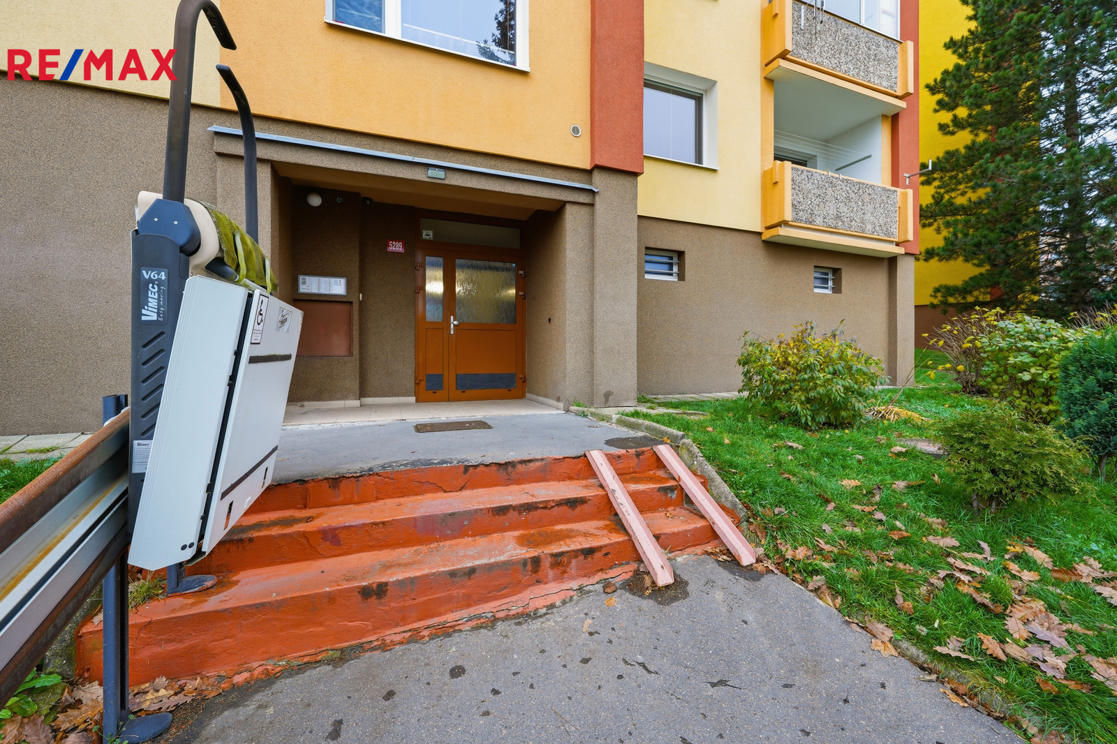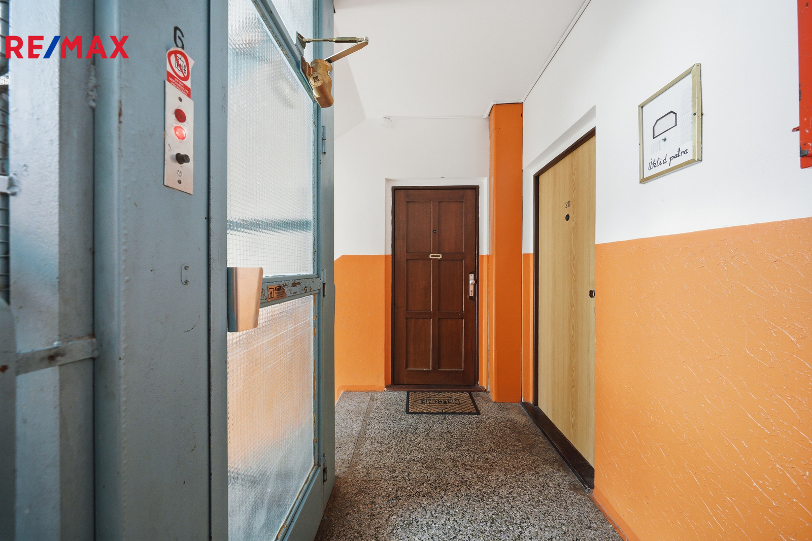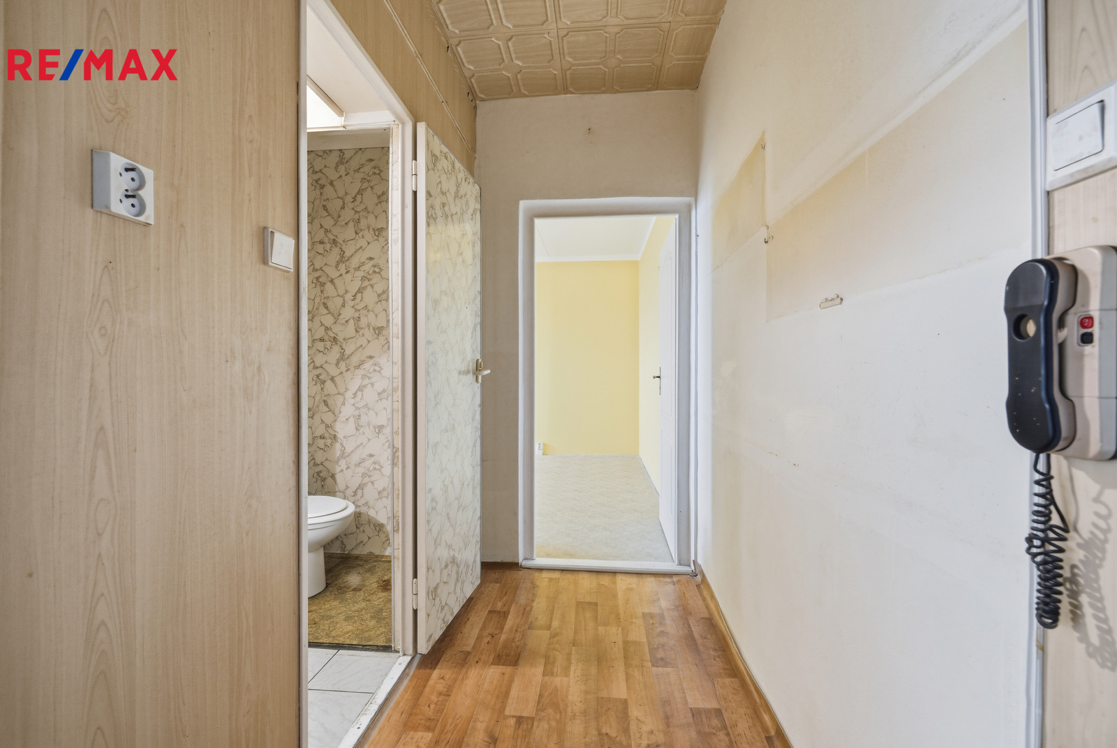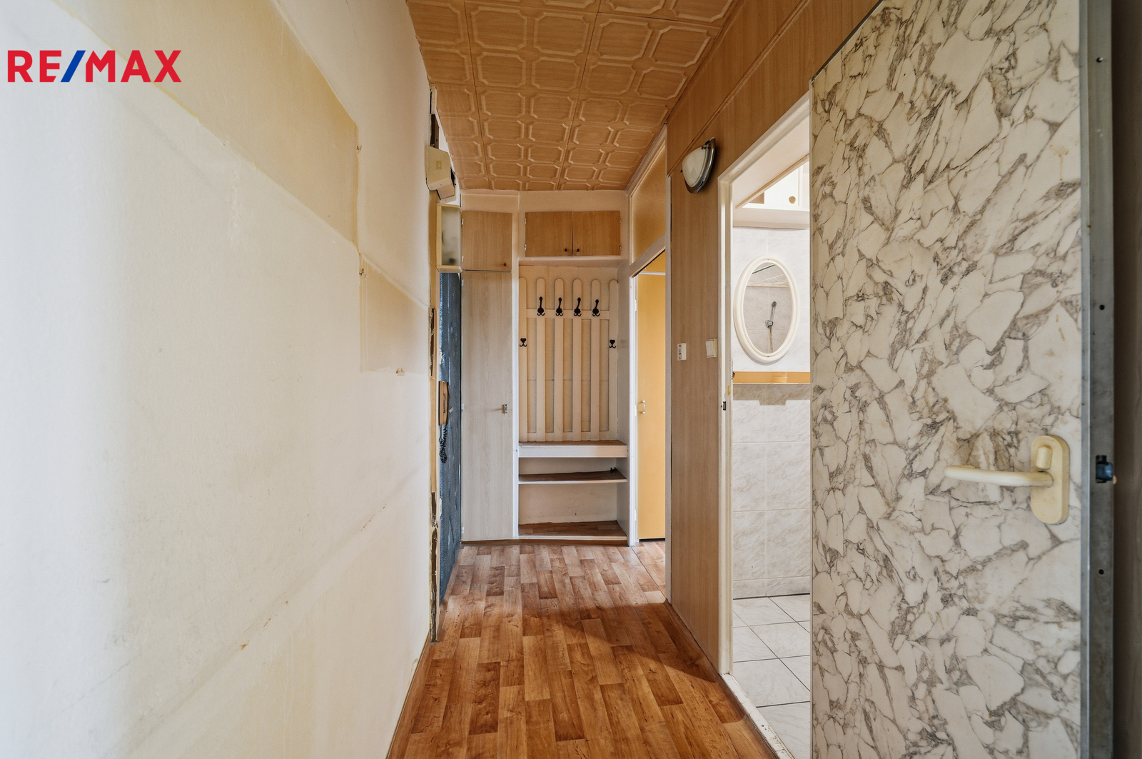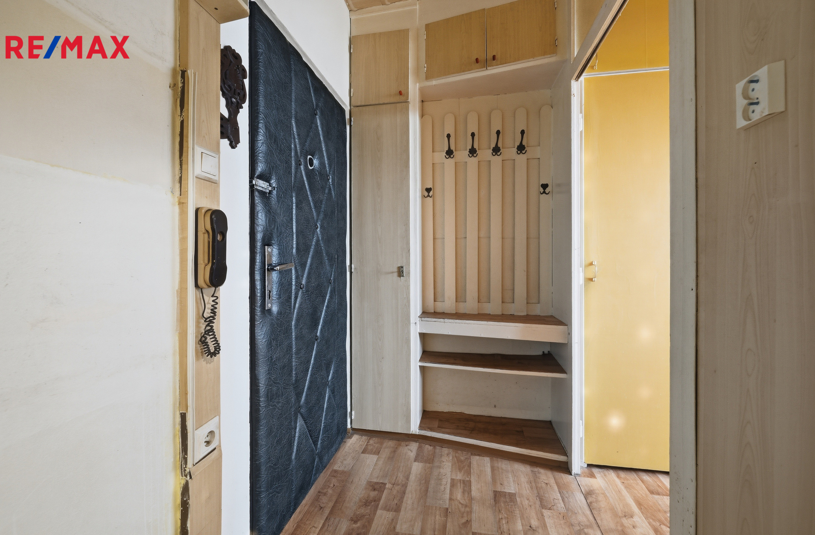 Byt o celkové výměře 39 m² je v osobním vlastnictví a náleží k němu sklepní kóje i balkón umístěný v mezipatře, který je určen výhradně pro tento byt. Interiér je v původním, ale zachovalém stavu – čistý, vyklizený a připravený k okamžitému nastěhování nebo rekonstrukci podle vlastního vkusu. Dispozice je chytře řešena: z předsíně se vstupuje samostatně do kuchyně, do koupelny s toaletou a do hlavního pokoje - ne jak je tomu běžně u tohoto typu bytů, kdy se do ostatních prostor vchází až z kuchyně. Kuchyň je vybavena funkční kuchyňskou linkou a kombinovaným sporákem s plynovou varnou deskou a elektrickou troubou. Koupelna s vanou a toaletou je součástí původního umakartového jádra, ale v udržovaném stavu. Z pokojů je výhled orientovaný na parkoviště před domem.