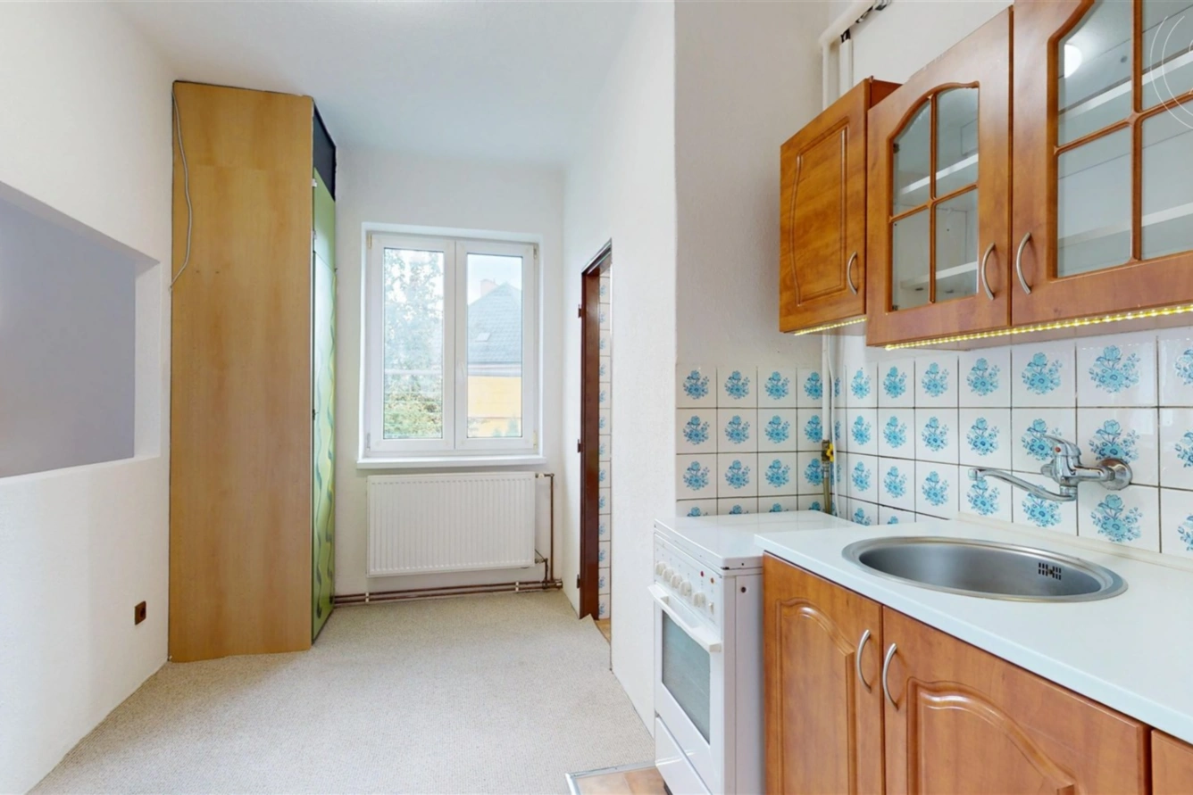 Uvnitř na vás čeká chodba s prostorem pro vestavěné skříně. Z chodby se dostanete do kuchyně samostatné WC a obývacího pokoje. Ten je největší místností v bytě, světlý a prostorný, ideální pro odpočinek i práci. Navíc je zde možnost instalovat kamna a tak si užívat večery u kamínek.