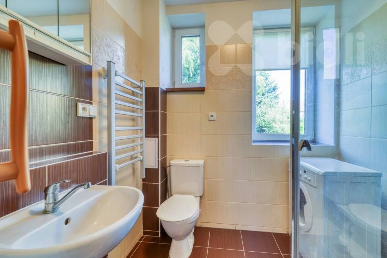 Byt 1+1 v osobním vlastnictví se nachází ve zvýšeném přízemí a prošel částečnou rekonstrukcí. Nabízí dvě světlé místnosti, prostornou koupelnu s elektrickým bojlerem a praktickou předsíň (viz půdorys).