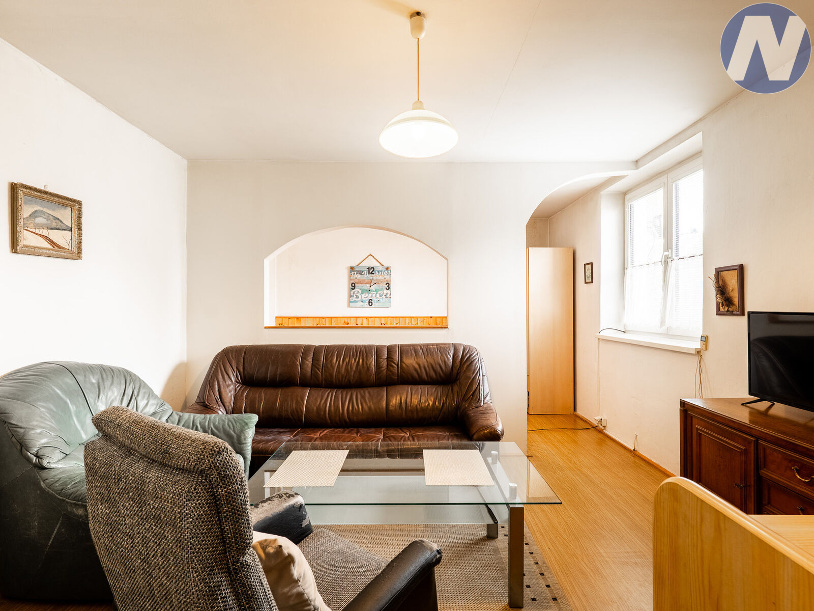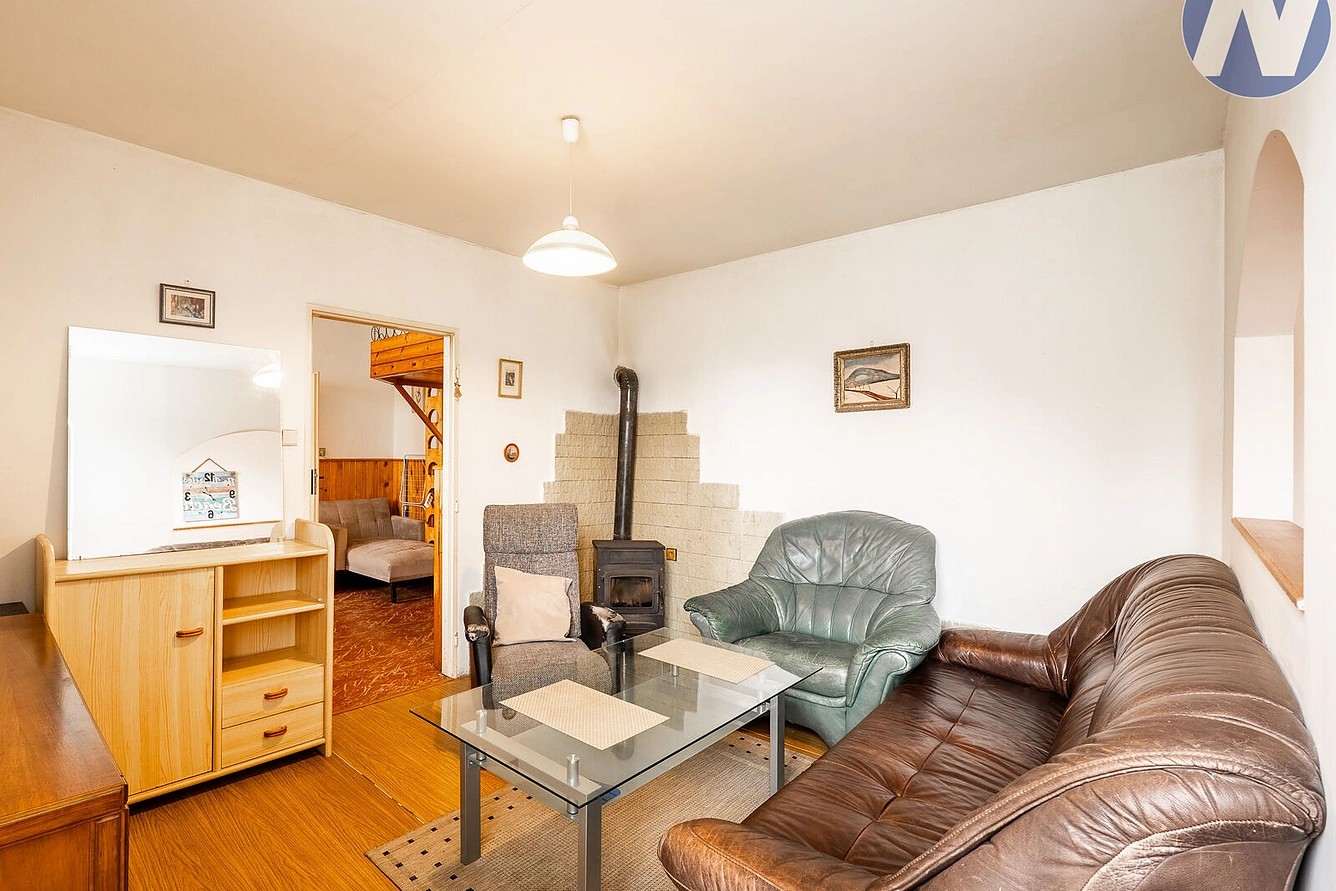 Byt je v původním, avšak udržovaném stavu a je plně obyvatelný – připravený k okamžitému nastěhování. Dispozice je praktická a dobře uspořádaná: samostatná kuchyně s místem pro jídelní stůl, prostorný pokoj aktuálně rozdělený přepážkou na obývací a spací část, a koupelna s toaletou. Voda i kanalizace jsou obecní, vytápění zajišťují kamna na dřevo, která navozují příjemnou atmosféru domova.