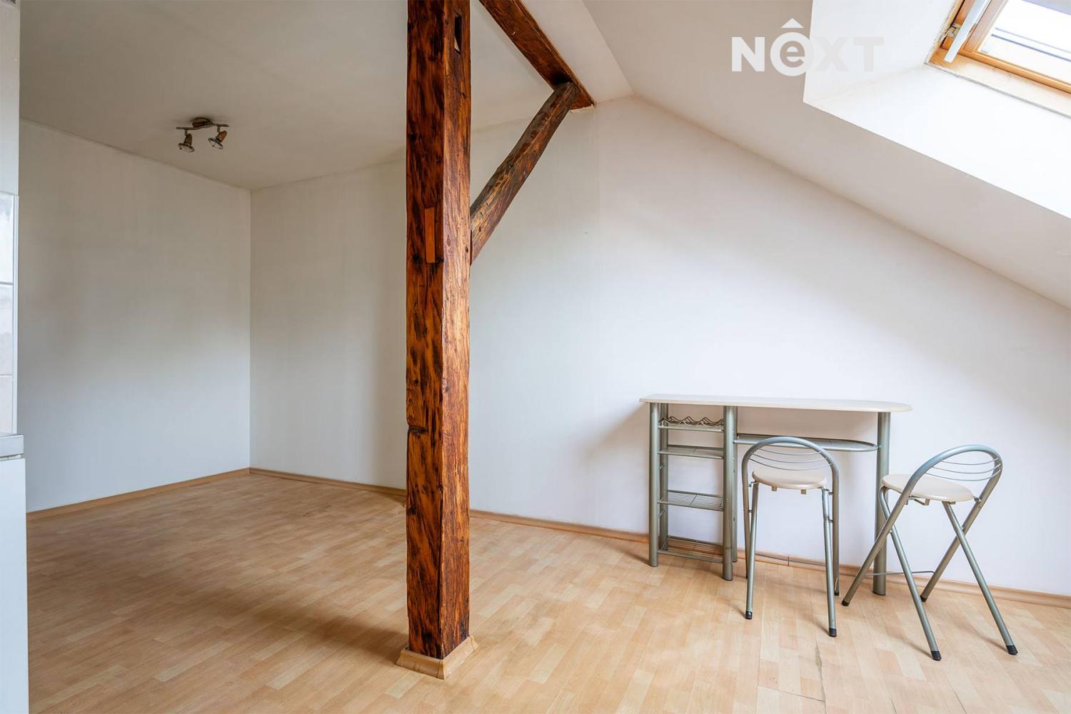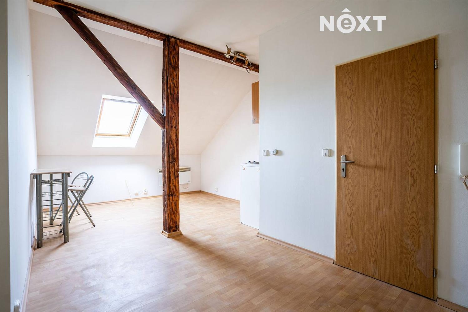 Na prodej nabízíme byt 1+kk o celkové ploše 21,7 m², který se nachází v podkroví cihlového domu.