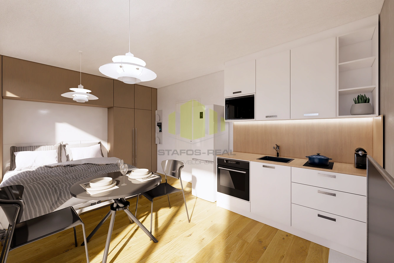 Moderní byt 1+kk s balkonem v projektu Rezidence Mánesova v Lipníku nad Bečvou nabízí praktické a útulné bydlení v klidné lokalitě s výbornou dostupností centra města. Byt je vybaven vinylovými podlahami, teplovodním podlahovým topením a kuchyňskou linkou v ceně bytu. Samozřejmostí je příprava pro venkovní žaluzie a u bytů ve 4.–6. NP také příprava na klimatizaci. Interiérové prvky je možné zvolit ve světlé (2NP, 4NP, 6NP) nebo tmavé variantě (3NP, 5NP).