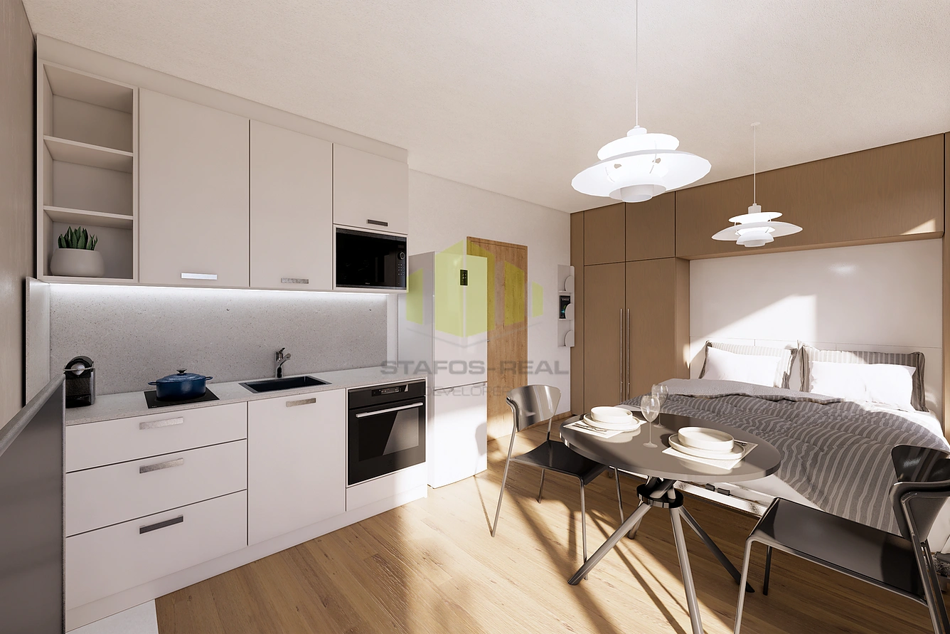 Moderní byt 1+kk s balkonem v projektu Rezidence Mánesova v Lipníku nad Bečvou nabízí praktické a útulné bydlení v klidné lokalitě s výbornou dostupností centra města. Byt je vybaven vinylovými podlahami, teplovodním podlahovým topením a kuchyňskou linkou v ceně bytu. Samozřejmostí je příprava pro venkovní žaluzie a u bytů ve 4.–6. NP také příprava na klimatizaci. Interiérové prvky je možné zvolit ve světlé (2NP, 4NP, 6NP) nebo tmavé variantě (3NP, 5NP).