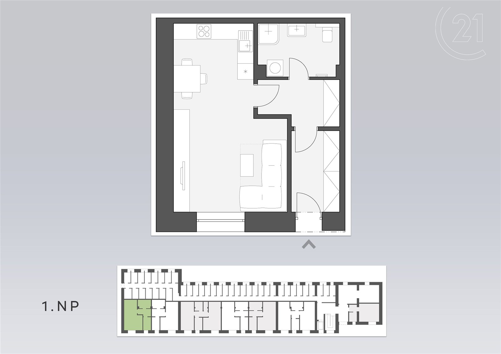Nabízíme prodej zcela nového bytu 1+kk o velikosti 43m2 v 1.NP kompletně zrekonstruovaného domu Rezidence Palackého, kde bylo vše vybudováno ve vyšším standardu, který se týká použitých materiálů jak při výstavbě celého komplexu, tak i při vybavení jednotlivých bytových jednotek.
