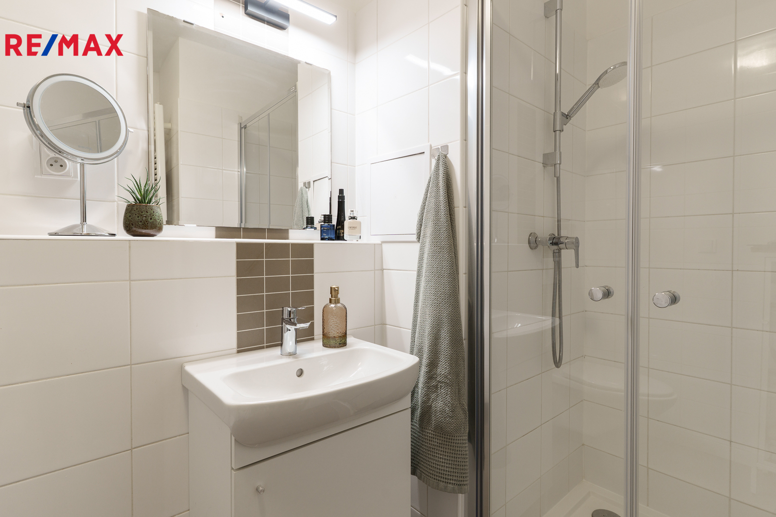Byt prošel kompletní rekonstrukcí a je plně vybavený, takže je připraven k okamžitému nastěhování. Součástí je moderní koupelna se sprchovým koutem a WC. Velkou předností bytu je prostorná terasa s předzahrádkou o velikosti 39 m², ideální pro relaxaci, posezení s přáteli nebo domácí pěstování.