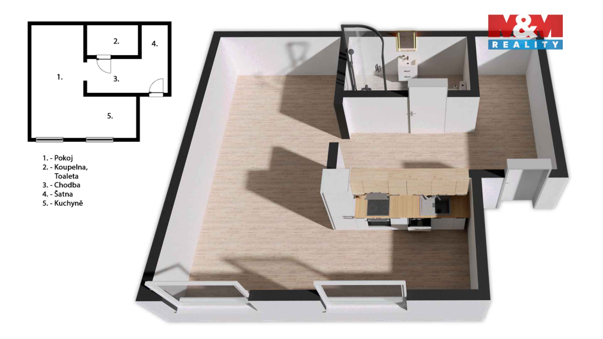 Nabízíme Vám k prodeji cihlový byt o dispozici 1+kk na ulici Komenského v Šumperku. Bytová jednotka je z větší části po rekonstrukci se skvělým řešením spacího prostoru. Byt se skládá ze vstupní chodby, komory a koupelny v původním stavu. Dále kuchyňským koutem a obývacím prostorem po rekonstrukci. Velkou předností je možnost využití terasy na střeše, která poskytuje úchvatný výhled na okolní památky a je ideálním místem pro odpočinek a večerní setkávání. Tento byt je skvělou investicí pro vlastní bydlení a nebo pro investiční záměr k pronajímání bytu. Pro více informací nebo prohlídku neváhejte kontaktovat makléřku nabídky. S financováním Vám rádi pomůžou naši finanční specialisté