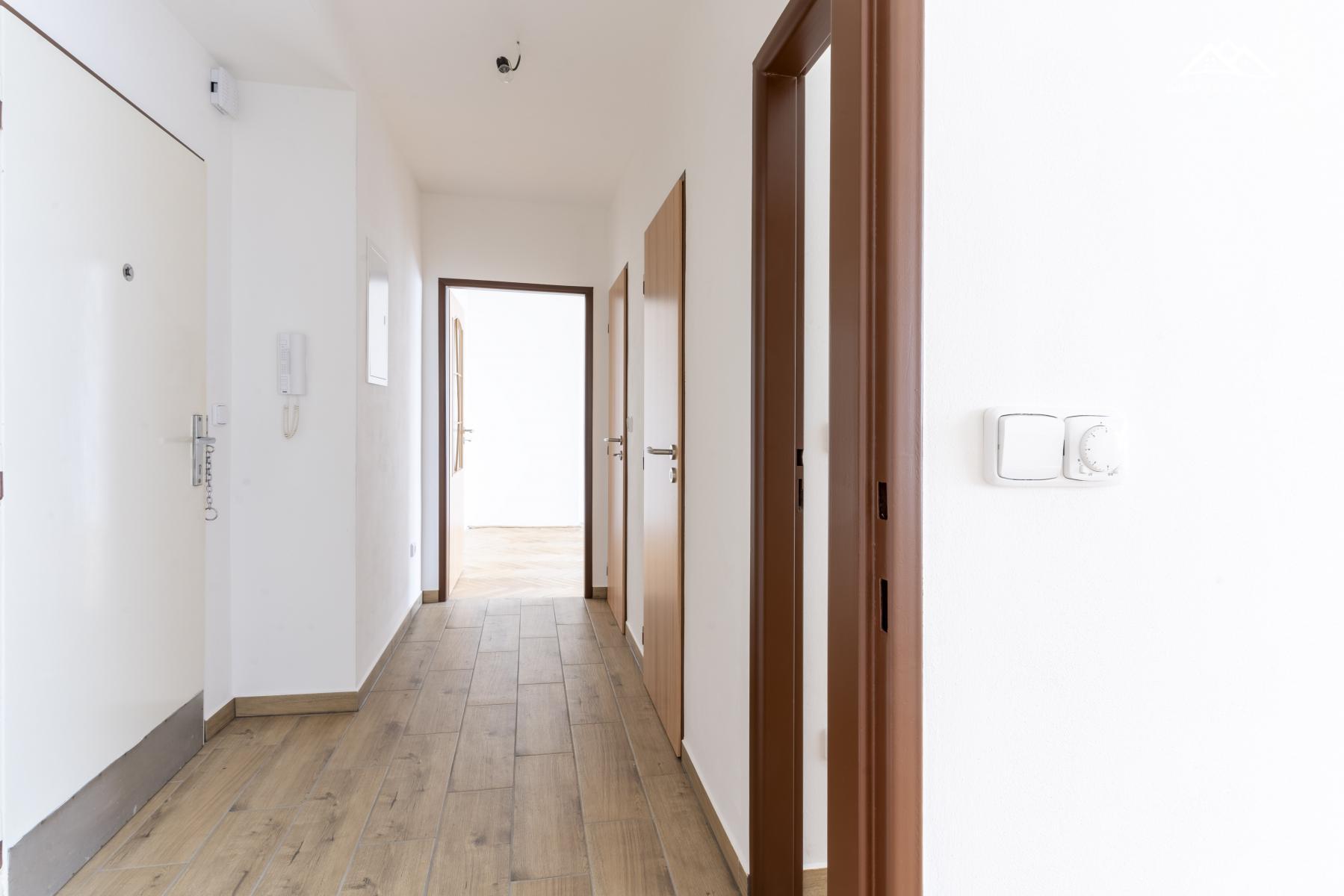 Byt nacházející se ve 3.podlaží je dispozičně řešen vstupní chodbou, ložnicí, koupelnou s vanou a umyvadlem, toaleta je odděleně, kuchyní s připravenými rozvody na umístění kuchyňské linky, prostorným obývacím pokojem.