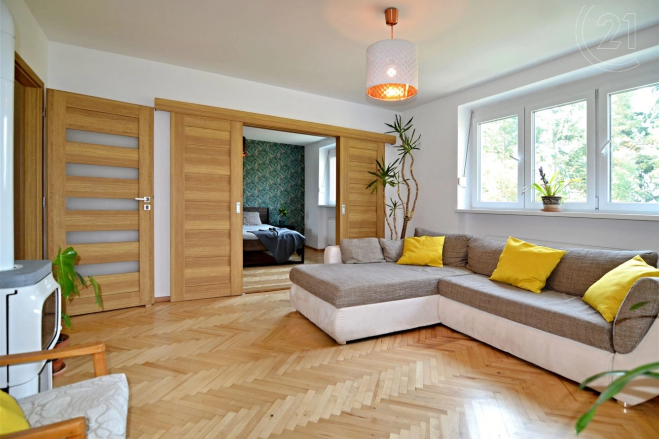 V současném stavu je nemovitost nabízená kompletně zařízena dle fotografií a má tak potenciál investičního bytu s okamžitou možností pronájmu bez nutnosti jakéhokoliv dalšího finančního vstupu. K dispozici je tak kompletně zařízená a vybavená kuchyňská linka včetně elektrických spotřebičů, ložnice s velkou prostornou šatní skříní, obývací pokoj s krbovými kamny, které doplňují vytápění bytu a koupelna se sprchovým koutem a toaletou. V neposlední řadě jsou nedílnou součástí bytu také dva samostatné prostorné sklepy.