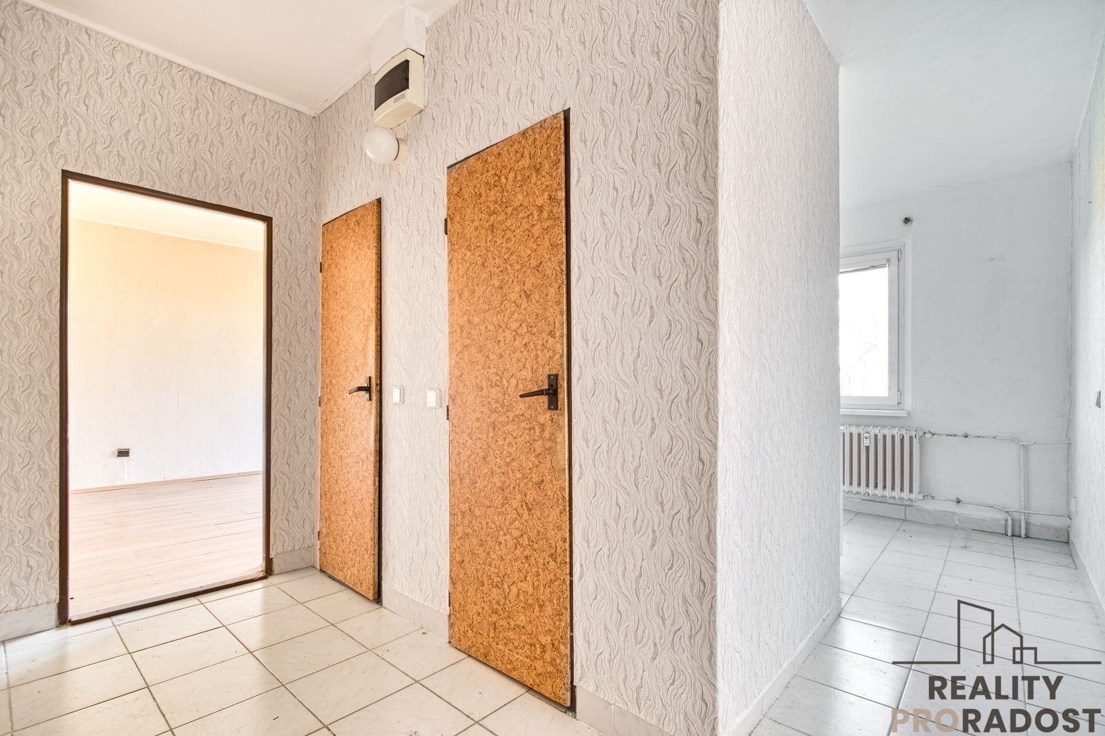 Byt samotný je v původním stavu před rekonstrukcí, což nabízí novým majitelům možnost přizpůsobit si interiér sami sobě dle svých představ.