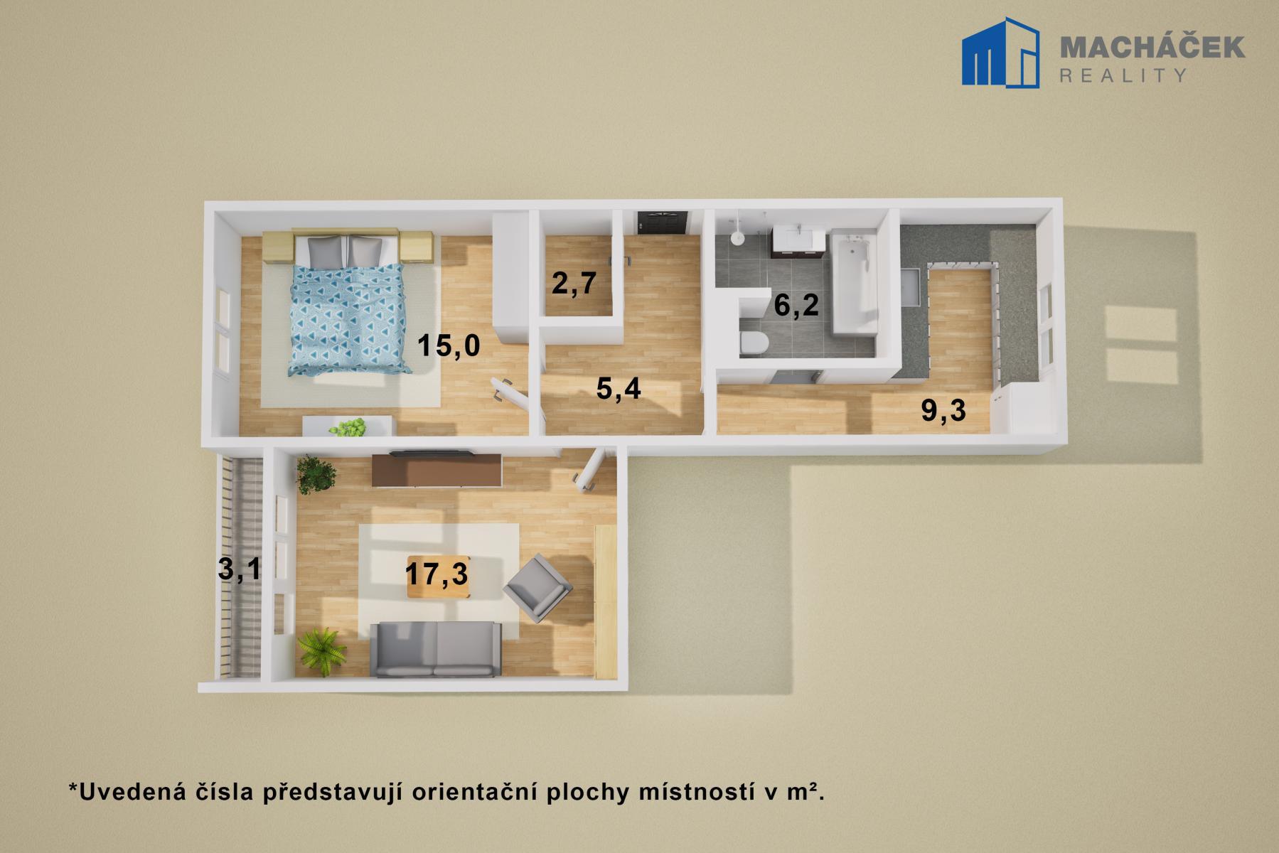 Byt je po kompletní rekonstrukci nové zděné jádro, moderní koupelna, kuchyňská linka včetně myčky a spotřebičů.