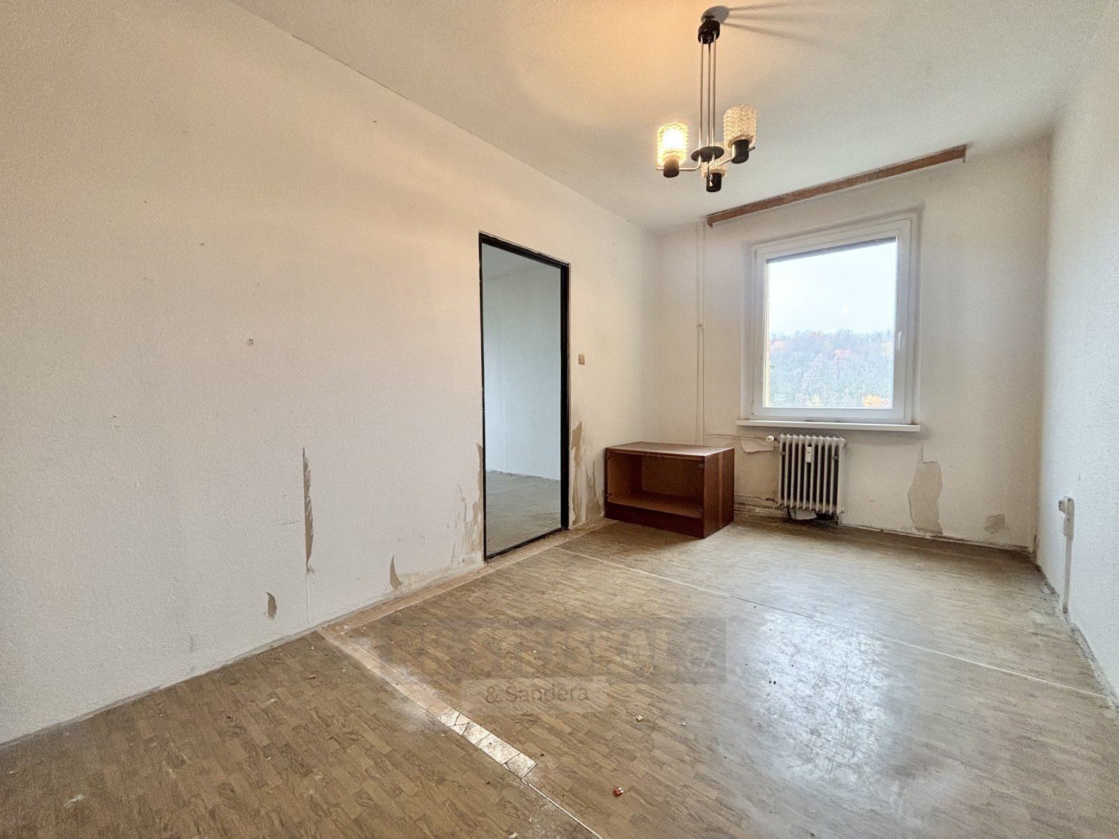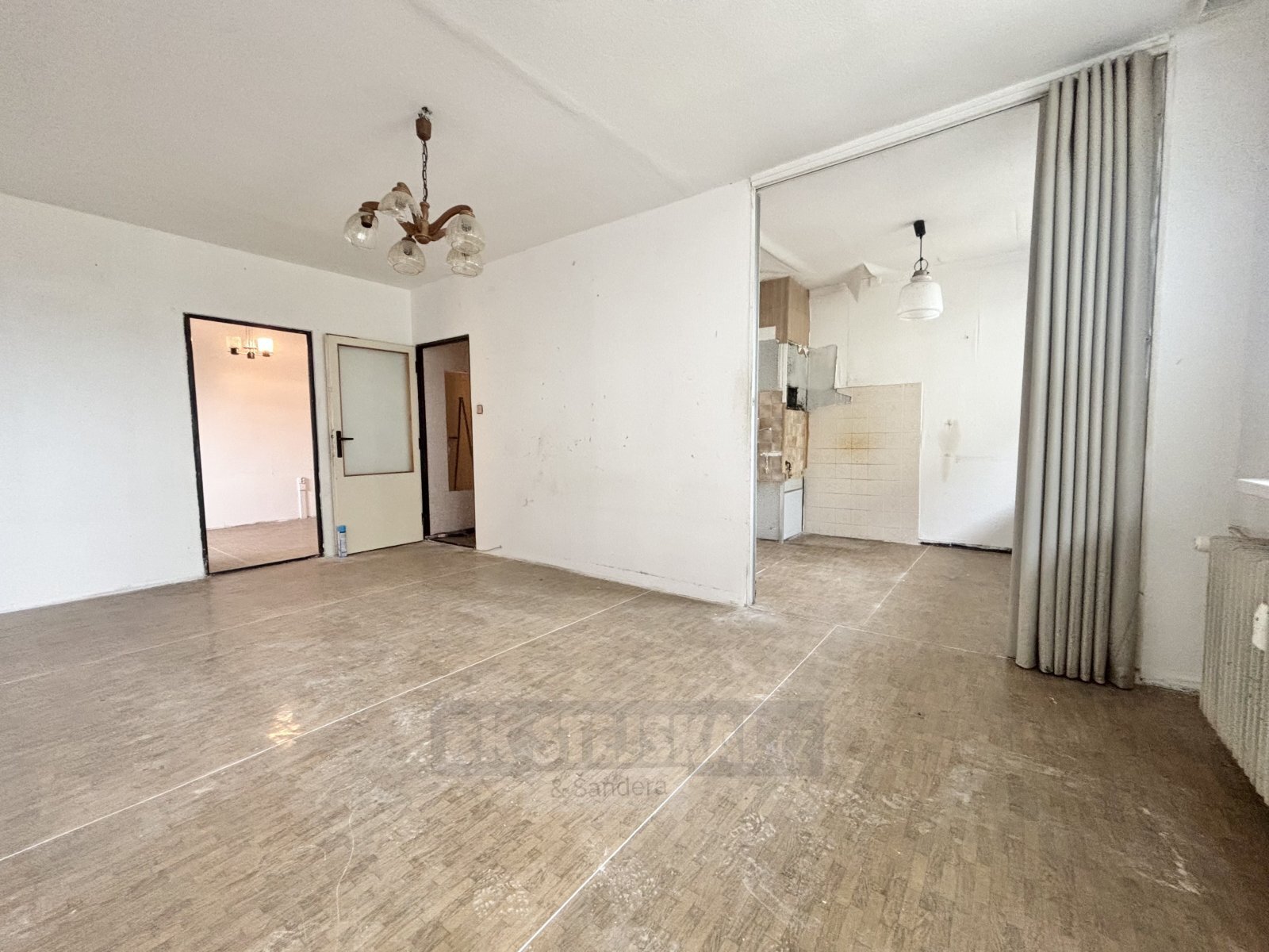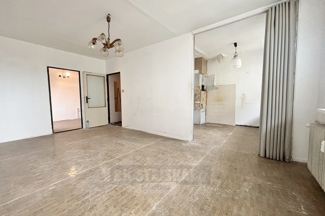 Byt je v původním stavu a je ideální pro rekonstrukci dle vlastních představ, protože všechny příčky jsou nenosné a dispozici lze upravit zcela flexibilně. Po vstupu do bytu vás uvítá prostorná chodba ve tvaru L, ze které je přístup do koupelny a samostatného WC (umakartové jádro). Z chodby se dále dostanete do prostorného obývacího pokoje, který nabízí dostatek místa pro vytvoření komfortní obývací části. Dále zde najdete vstup do samostatného pokoje a zároveň do kuchyně, která je s obývákem propojena.