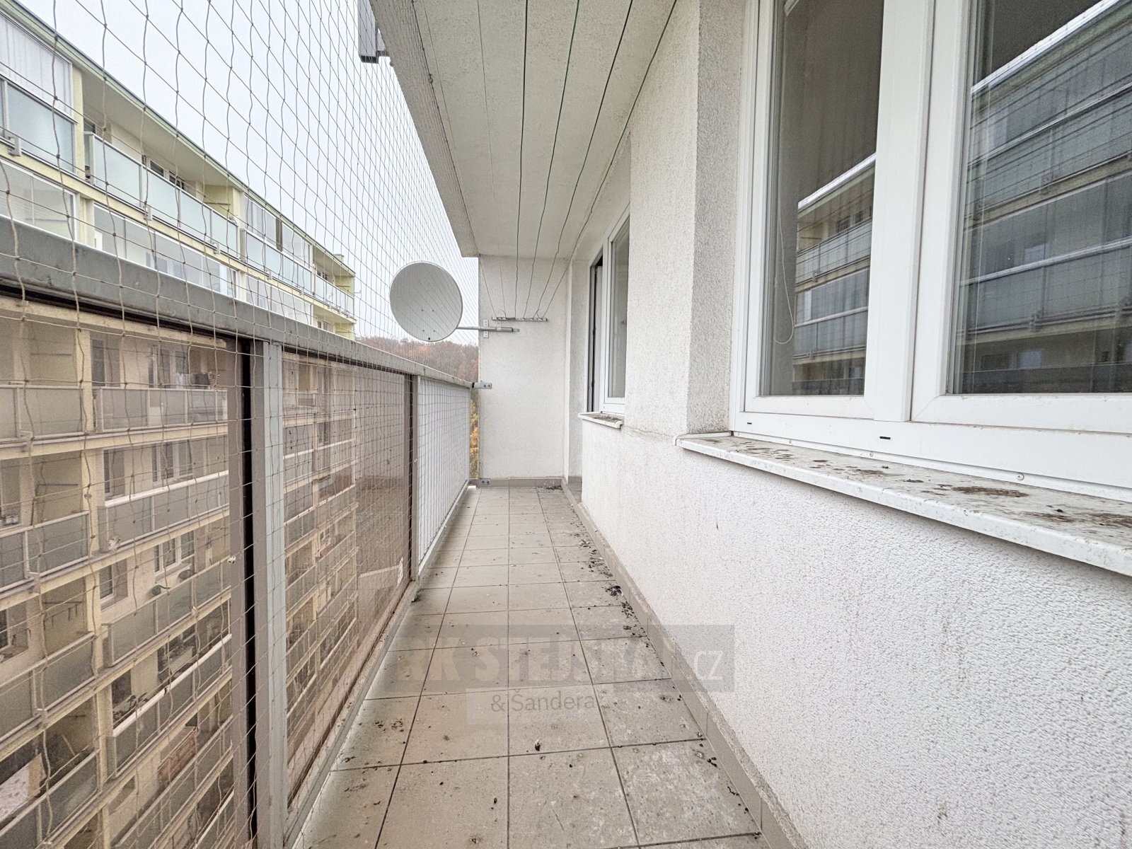 Z obývacího pokoje je také přístup na balkon, který poskytuje dostatek prostoru pro příjemné venkovní posezení a je vybaven sítí proti ptactvu. Momentálně jsou stěny bytu opatřeny tapetami a podlahy pokryté linem. K bytu dále náleží příruční sklep přímo na patře, ideální pro věci, které potřebujete mít po ruce, a také sklepní koje pro další skladování.