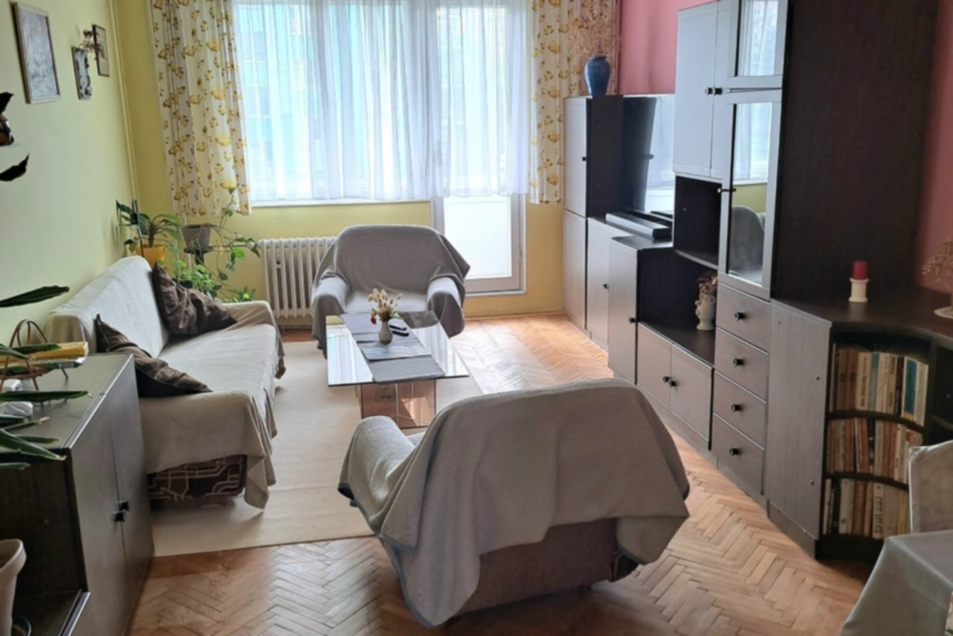 Byt sestává z předsíně, kuchyně, ložnice, obývacího pokoje, toalety a samostatné koupelny s vanou. Z obývacího pokoje je vstup na zasklenou lodžii o ploše 3 m2. V pokojích na podlahách parkety, v ostatních místnostech lino. V předsíni jsou prostorné vestavěné skříně. K bytu náleží sklep. Dálkové dodávky tepla a teplé vody.