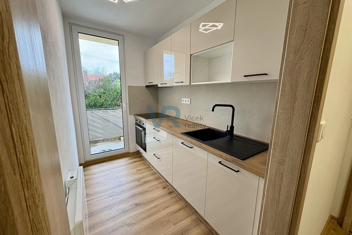 V bytě je nová kuchyňská linka, nová plastová okna, nová koupelna + WC, kompletní rozvody elektřiny, kompletní rozvody vody + odpadu, byt je kompletně nově vyštukovaný, nové podlahy.