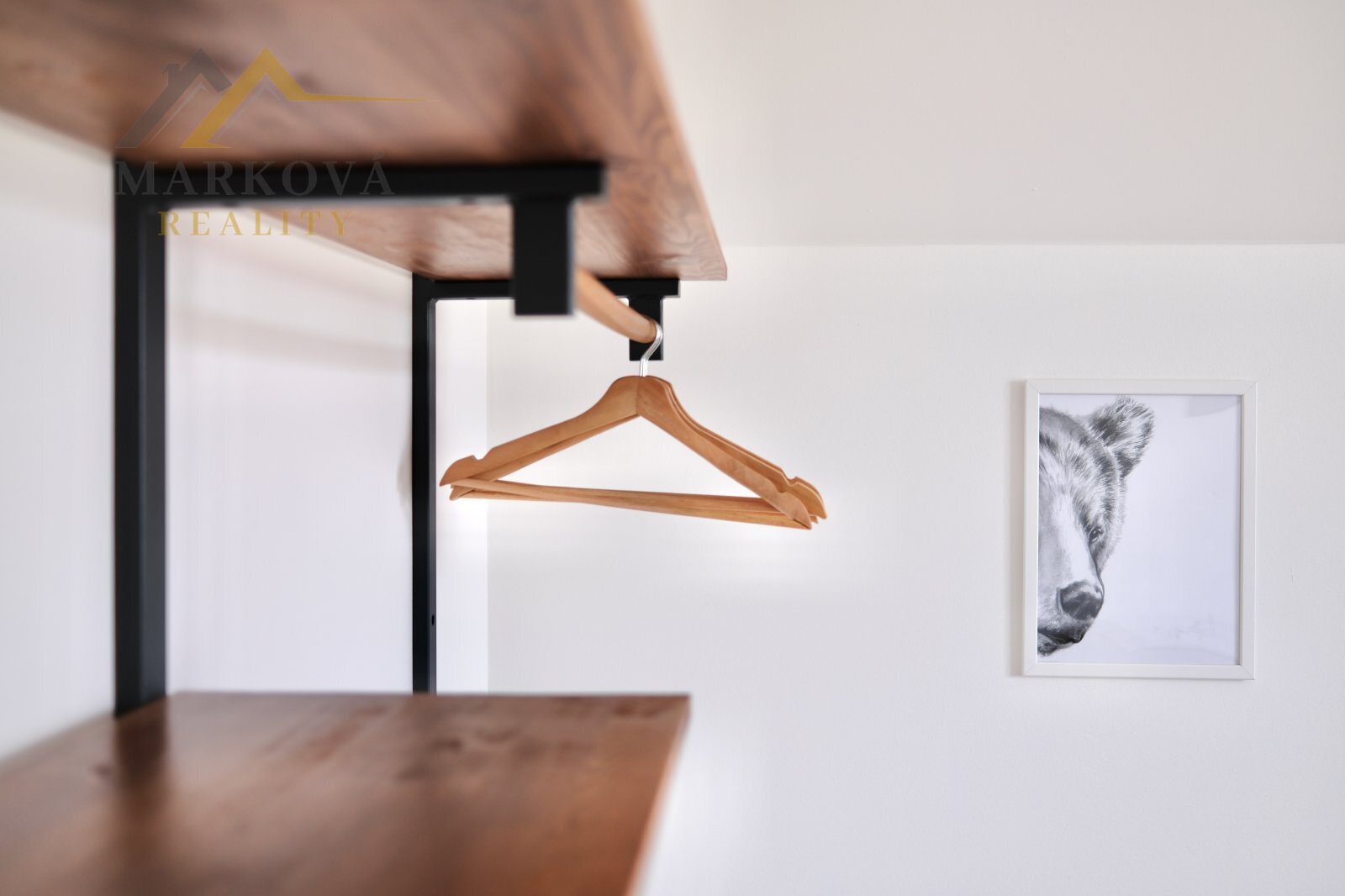 Interiér působí moderně, čistě a útulně, s důrazem na kvalitu a funkčnost. Dispozice zahrnuje vstupní chodbu, kuchyni s jídelnou, dvě ložnice a koupelnu se sprchovým koutem a toaletou. Apartmán je plně vybavený a připravený k okamžitému užívání – stačí přijet a užít si pohodu šumavské přírody.