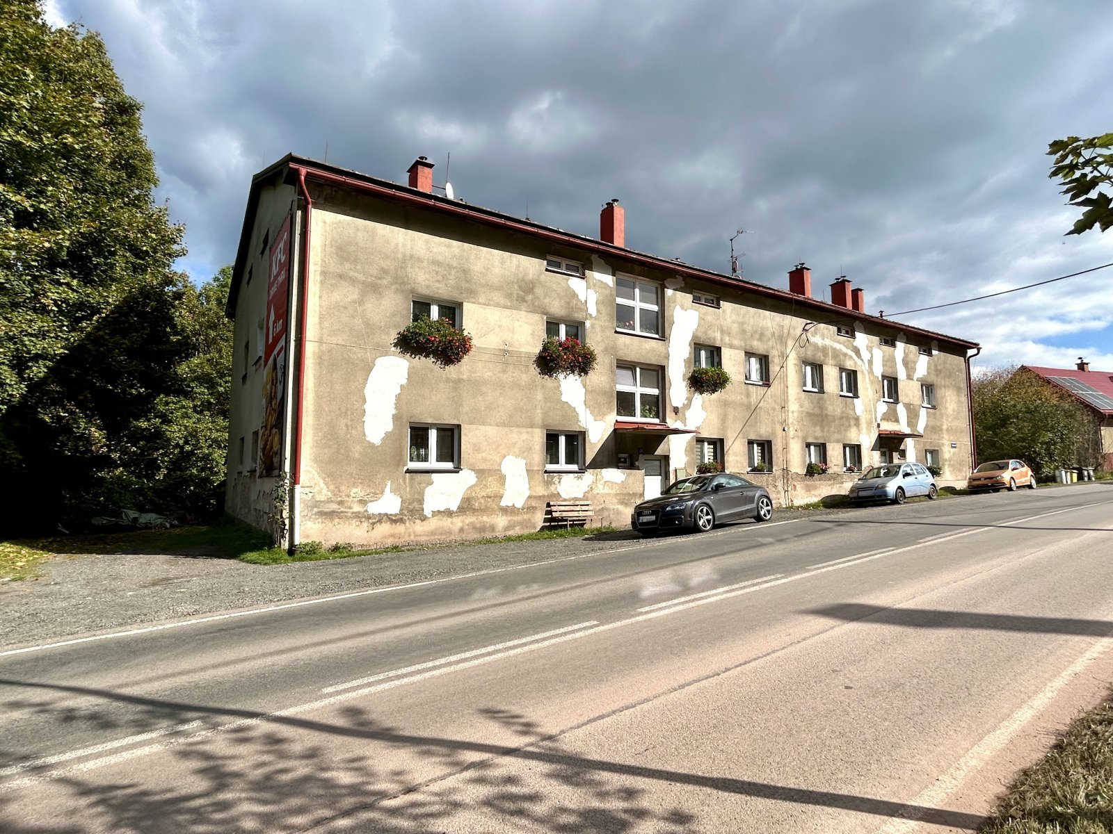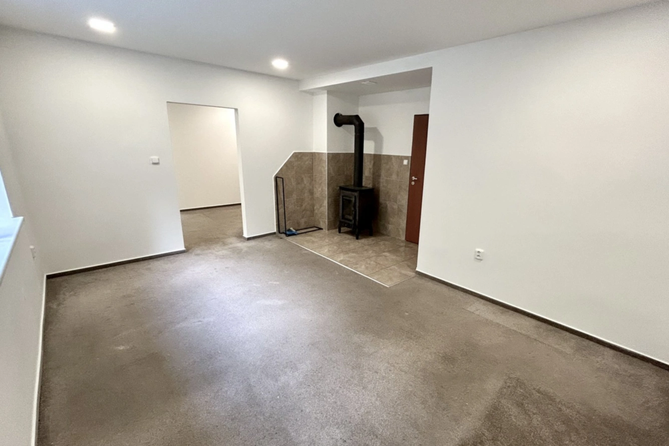 Dispozice bytu: vstupní chodba, pokoj, ložnice, obývací pokoj s krbem (krbová kamna), kuchyň, prostorná koupelna s vanou, místem pro pračku a WC. K bytu náleží sklep, společná půda nebo společný pozemek (zahrada) okolo domu.