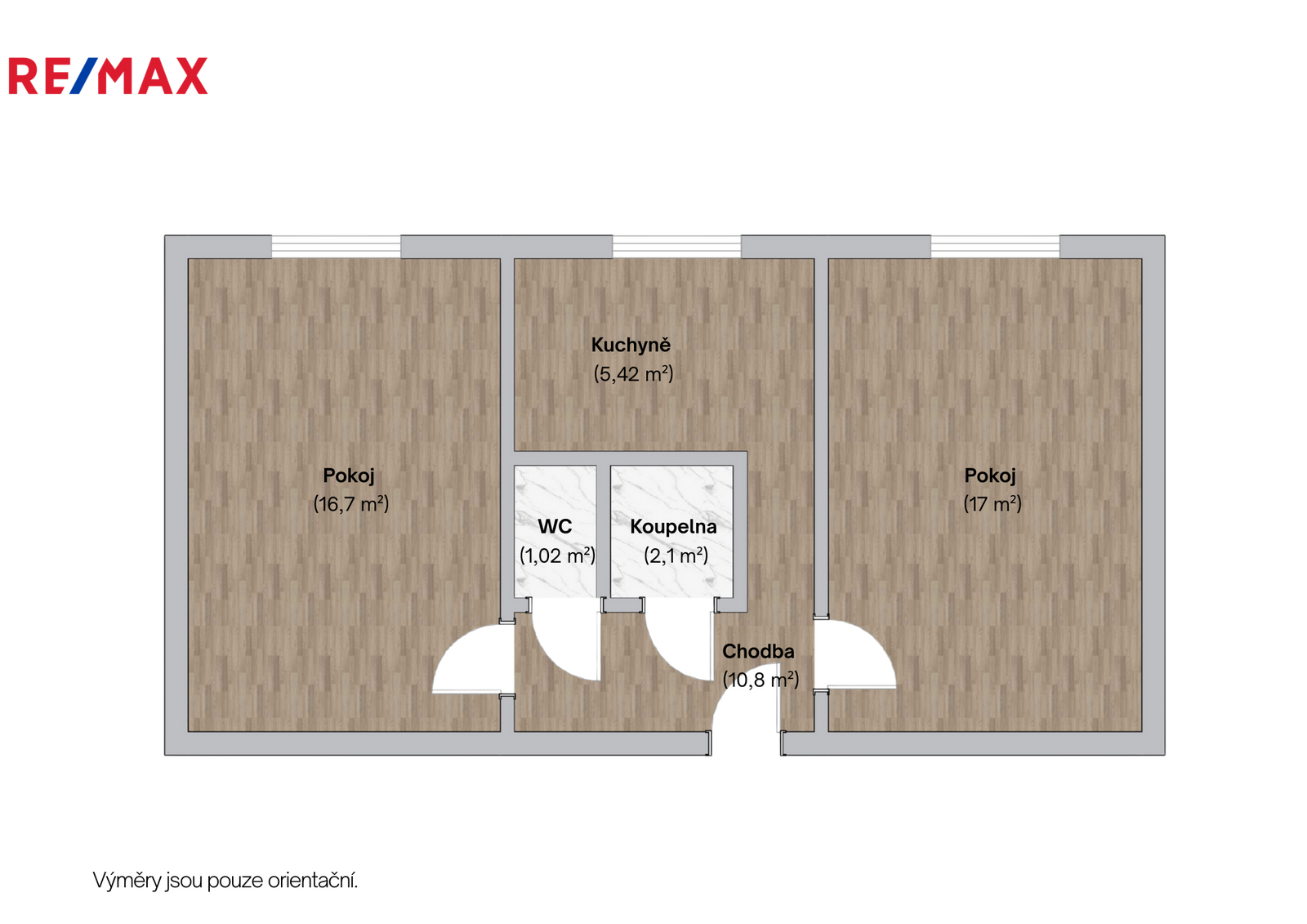 Byt disponuje neprůchozími pokoji, což zaručuje plné soukromí a pohodlí pro každého člena domácnosti.
