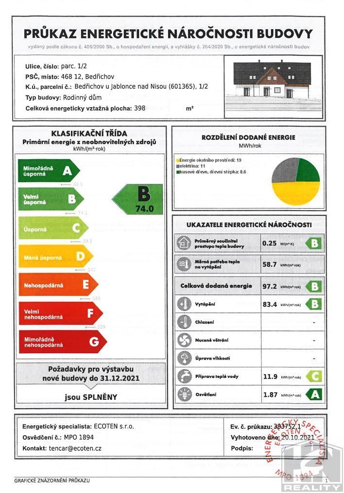 Nízké provozní náklady - energetická náročnost budovy PENB: třída B.