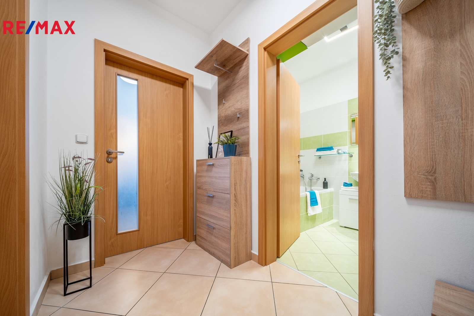 Z předsíně můžete vstoupit do ložnice, koupelny s WC ale hlavně do hlavního obytného prostoru s moderním a vybaveným kuchyňským koutem. Obývací pokoj nabízí dostatek místa pro pohodlné denní fungování a výstup na příjemně velký balkon, kde se dá v klidu posedět. Ložnice poskytuje klidné a útulné útočiště pro zasloužený odpočinek.