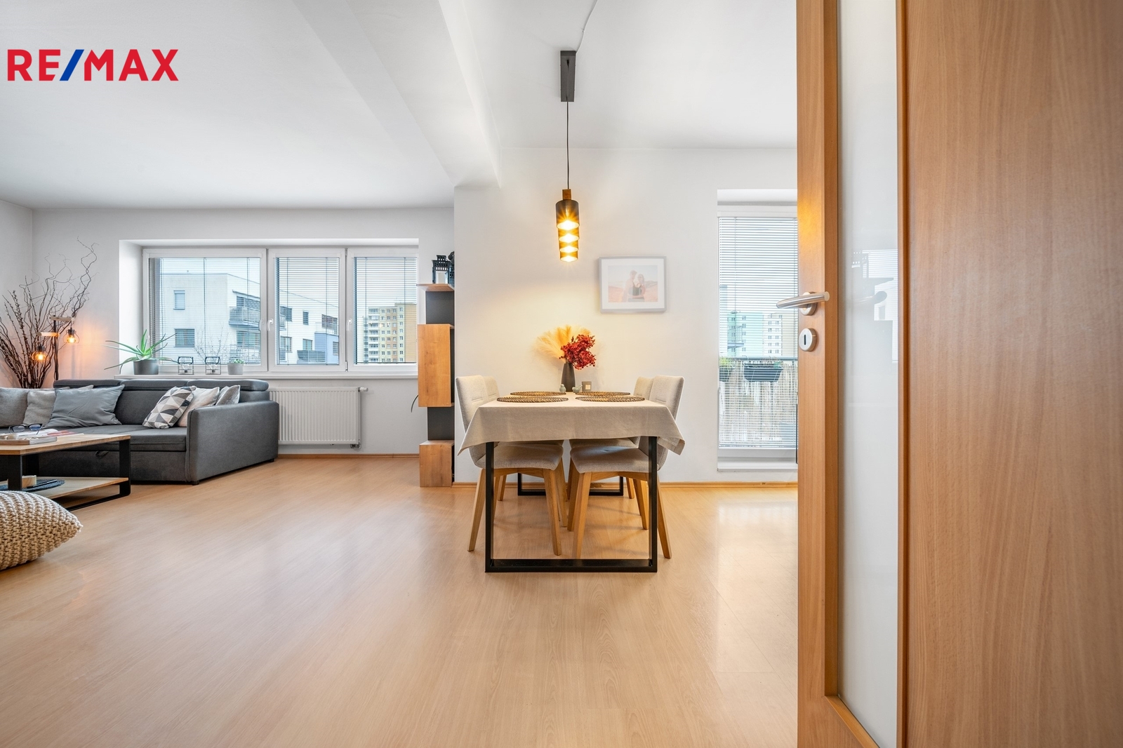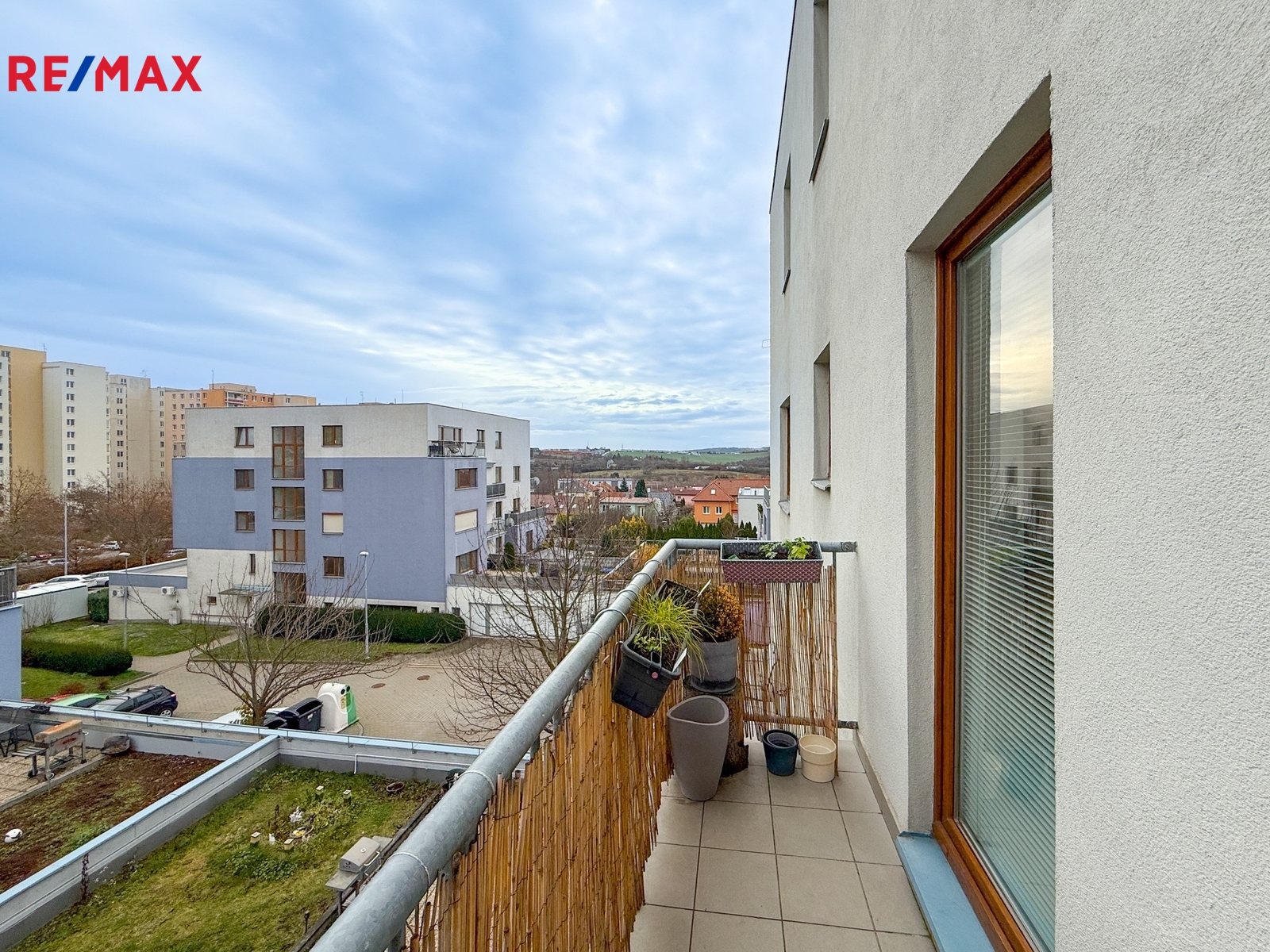 Byt se nachází v moderním domě z roku 2008, ve 3. patře ze 4, s orientací obývací části a balkonu na východ. Ložnice je otočená na sever, takže zůstává příjemně klidná.
