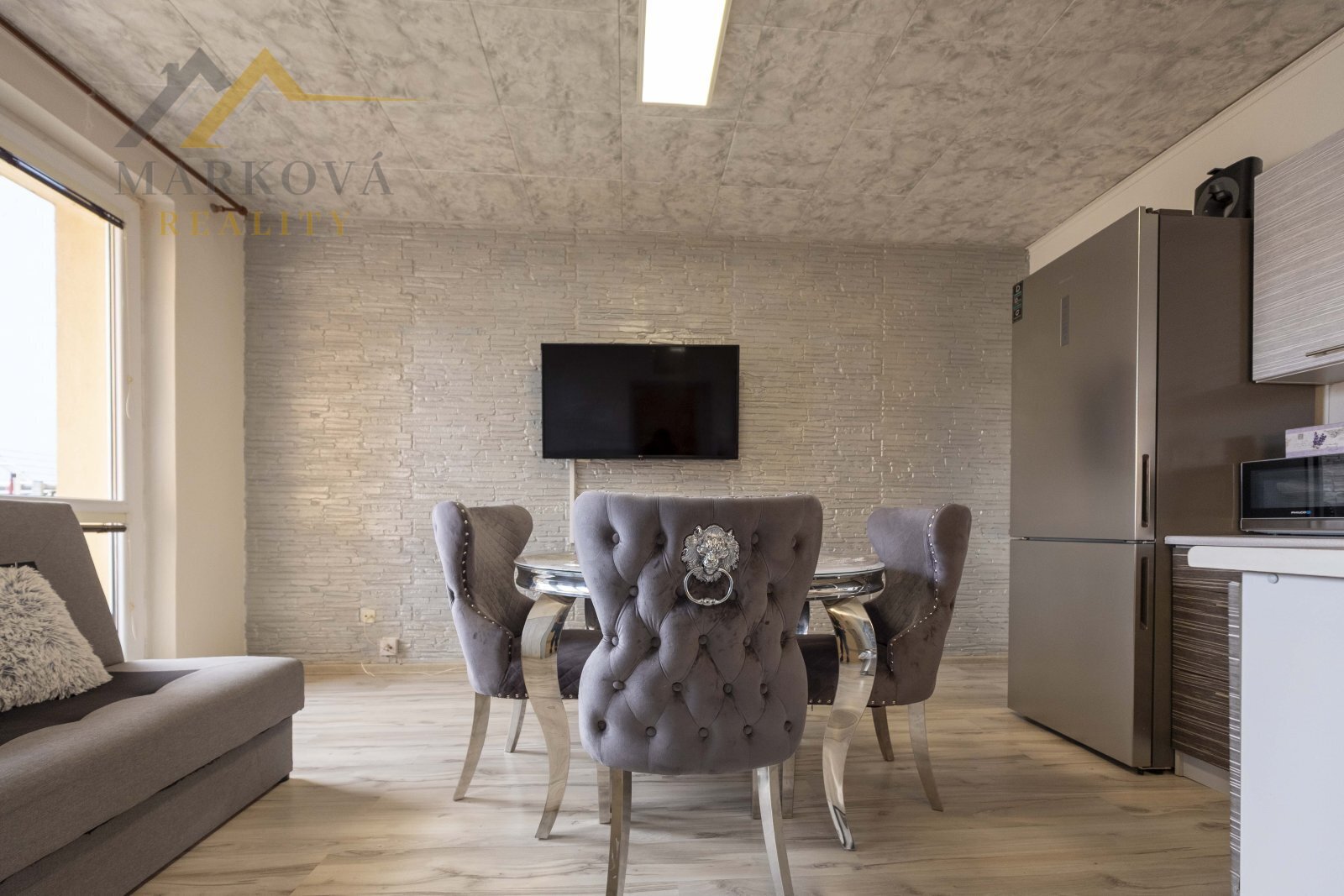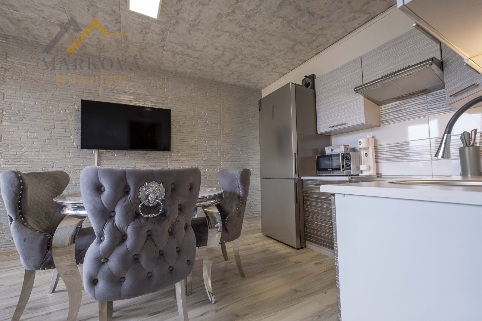 Interiér prošel částečnou rekonstrukcí. Najdete zde novou kuchyňskou linku se spotřebiči, moderní koupelnu, nové plovoucí podlahy a celkově svěží vzhled. Díky východní orientaci je byt plný denního světla, ale nepřehřívá se ani v letních měsících.
