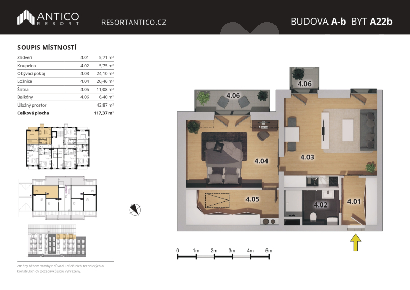 Užitná plocha bytu tak dohromady s balkony a úložnými prostory tvoří neuvěřitelných 117,4 m2.