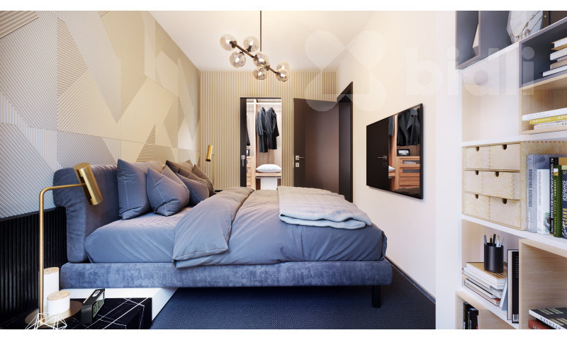 Na obývací místnost navazuje soukromá ložnice, která je zdokonalena nejen prostorem pro pracovnu, ale i oddělenou samostatnou šatnou. Úložné prostory jsou v tomto bytě opravdu štědré, a to i díky velkému půdnímu prostoru.