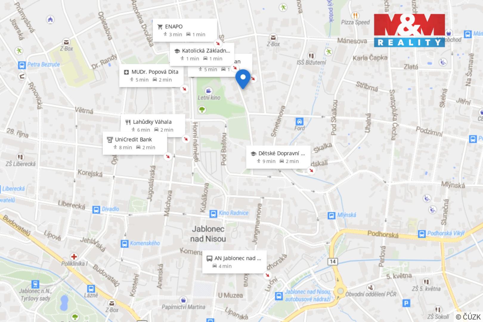 Lokalita nabízí veškerou občanskou vybavenost v pěší dostupnosti, obchod s potravinami i služby. Milovníci přírody ocení blízkost Jablonecké přehrady, ideální pro procházky, sport i odpočinek. Výhodou je také skvělá dopravní dostupnost směrem na Prahu.
