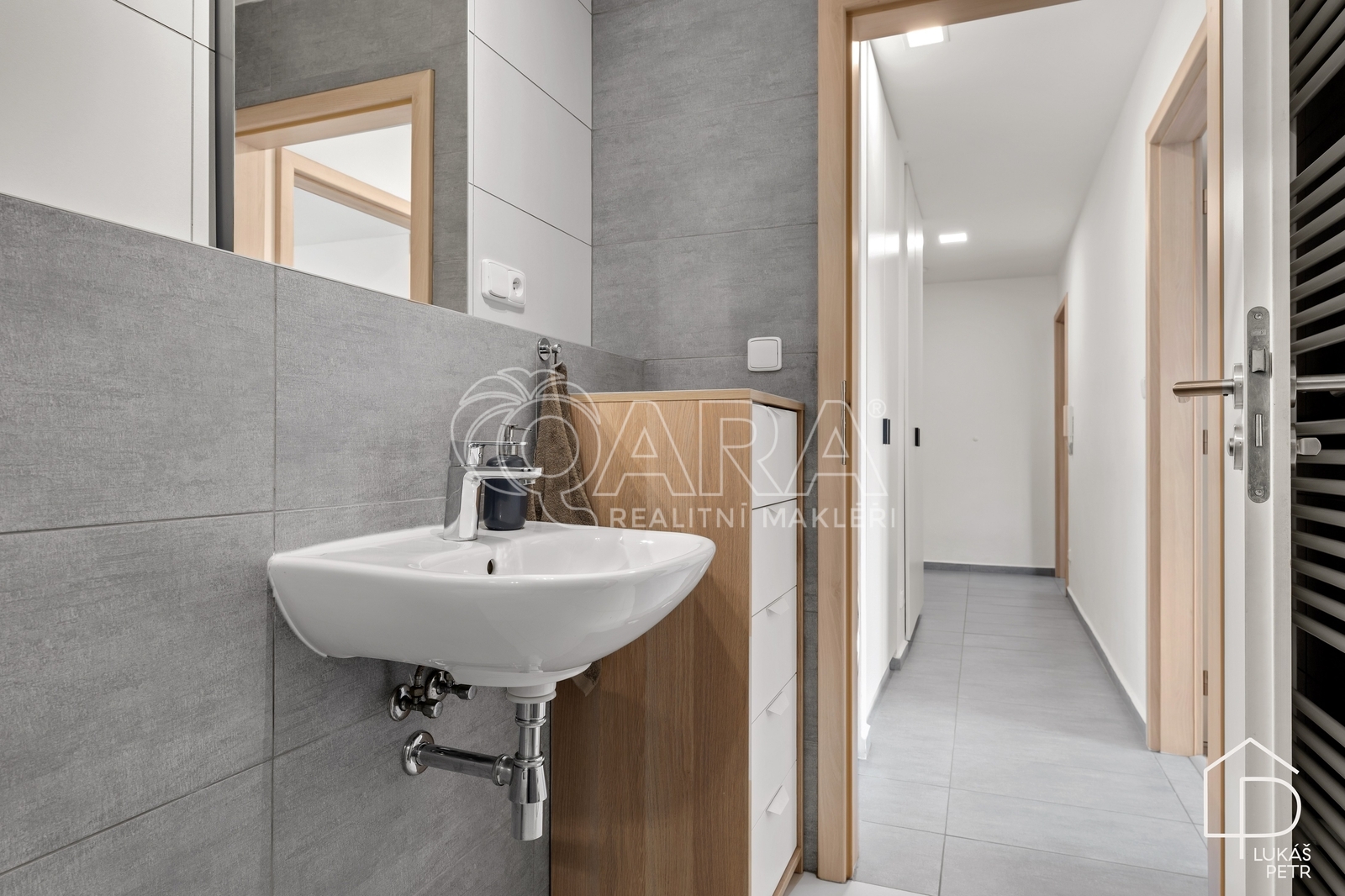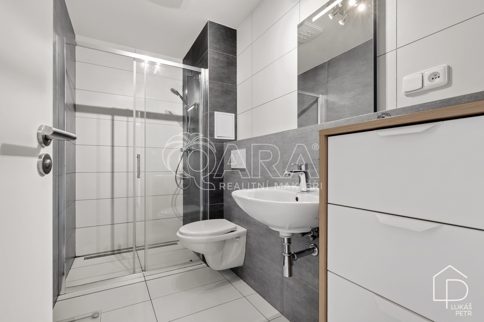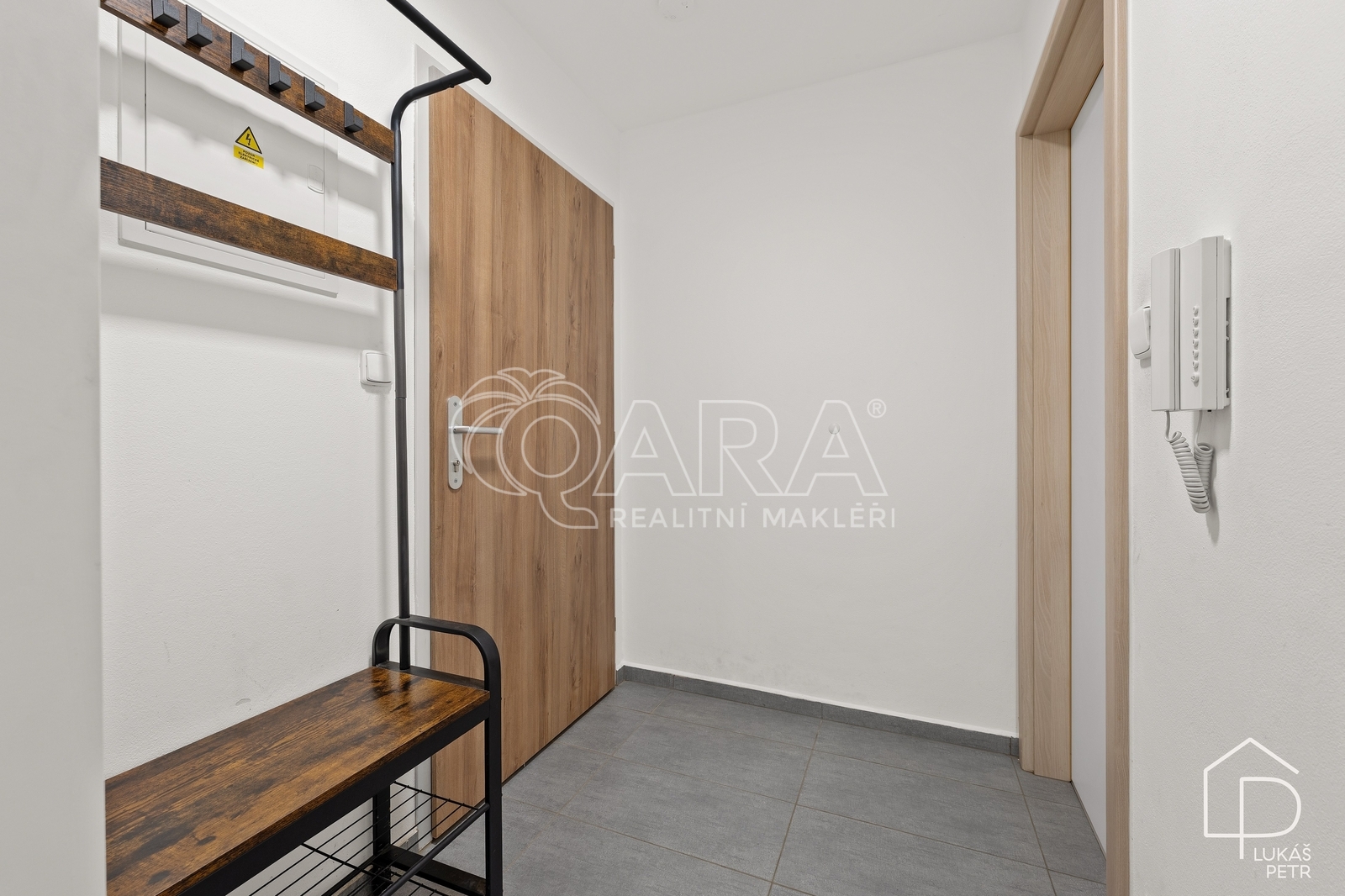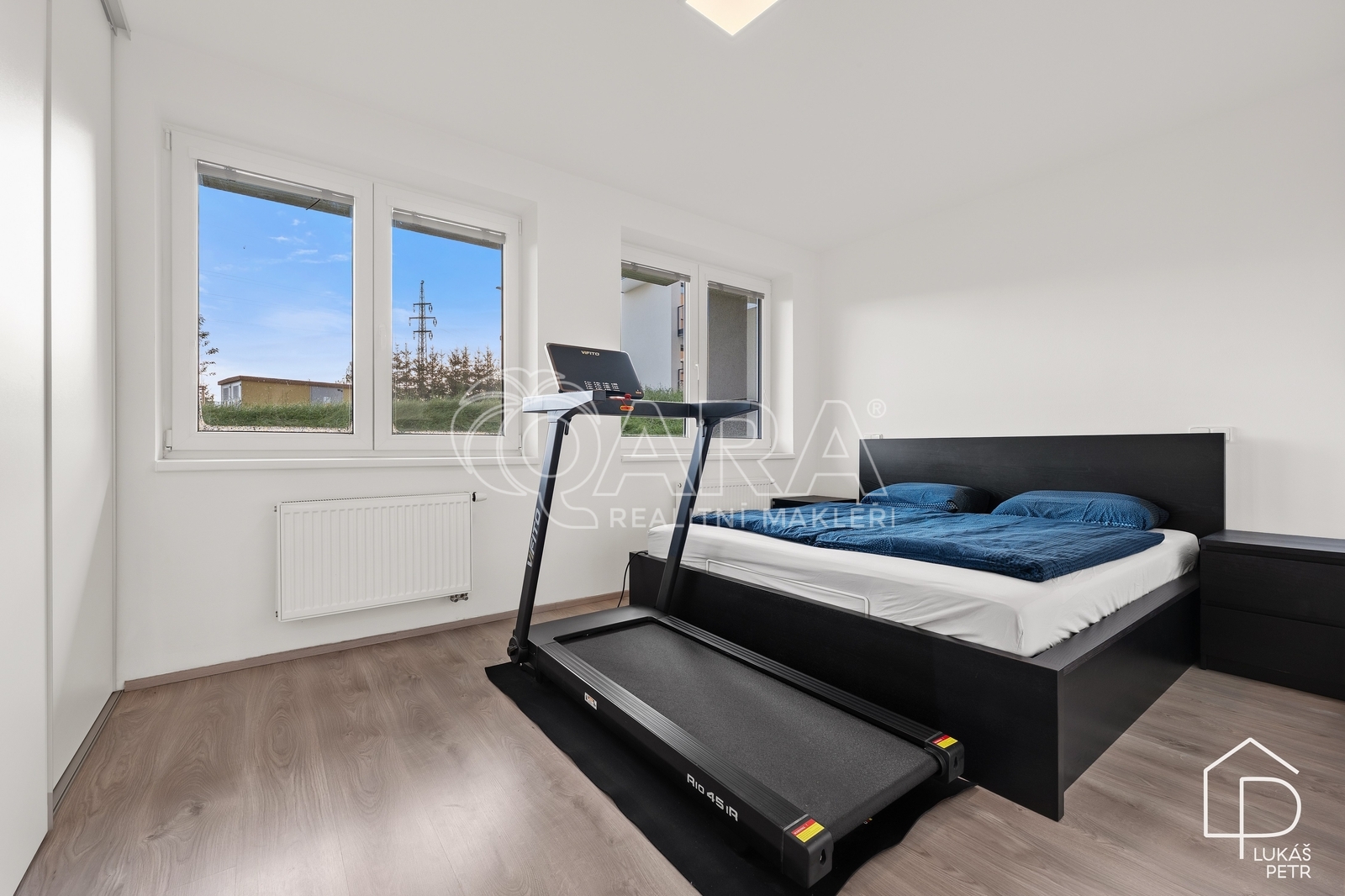 Dispozice dává smysl – obývací pokoj s kuchyňským koutem jako hlavní prostor bytu, samostatná ložnice a koupelna se sprchovým koutem a WC. Kuchyňská linka Ikea se spotřebiči, plovoucí podlahy, plastová okna. Vytápění je řešeno centrálně z domovní plynové kotelny, energetická třída B.