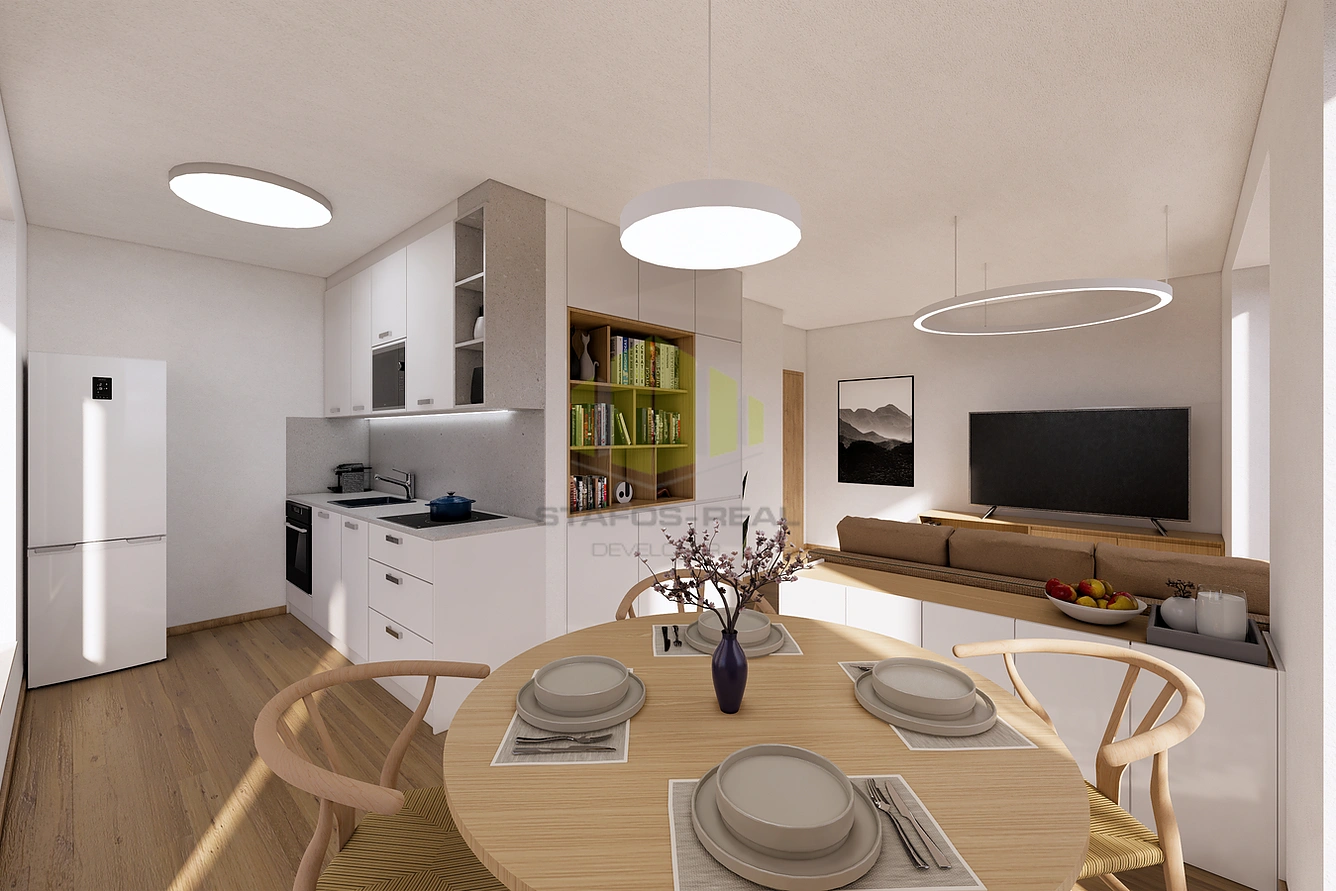 Světlý a moderně řešený byt 2+kk s balkonem v projektu Rezidence Mánesova v Lipníku nad Bečvou představuje ideální volbu pro páry, mladé rodiny nebo investory. Byt je vybaven vinylovými podlahami, teplovodním podlahovým vytápěním, kuchyňskou linkou v ceně bytu, přípravou pro venkovní žaluzie a u bytů ve 4.–6. NP také přípravou na klimatizaci. Interiérové prvky je možné zvolit ve světlé (2NP, 4NP, 6NP) nebo tmavé variantě (3NP, 5NP).