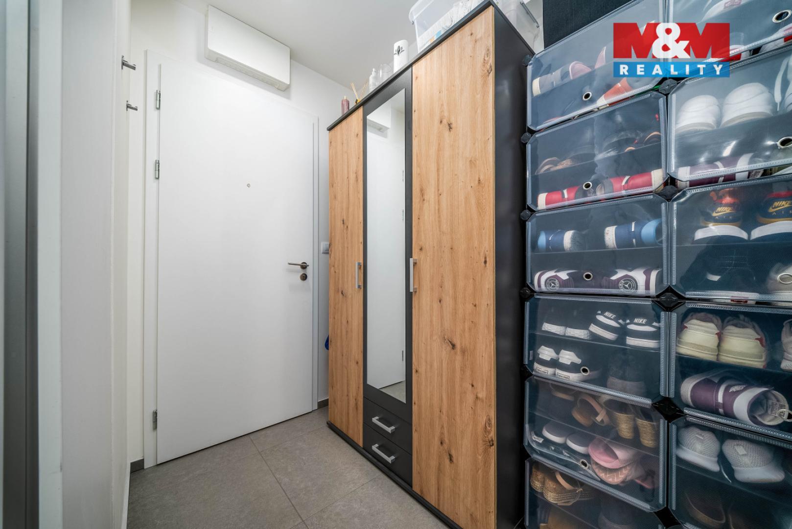 Po vstupu do bytu vás uvítá předsíň s vestavěnou skříní. Koupelna je prakticky oddělená od toalety. Na chodbu navazuje kuchyňský kout propojený s prostorným obývacím pokojem. Dále je zde oddělená ložnice a menší místnost, kterou lze využít jako pracovnu nebo relaxační koutek. K bytu patří sklep, kočárkárna a vlastní parkovací stání.