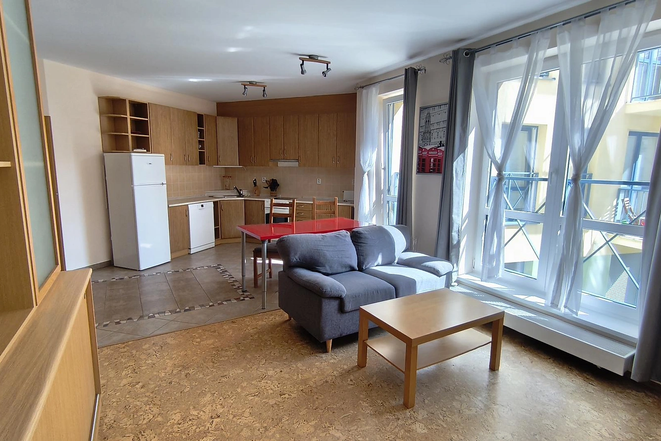 Byt se skládá z prostorné obytné místnosti s kuchyňským koutem, předsíně, koupelny s WC a komory. Hlavní místnost je prakticky rozdělena vestavěnou stěnou na denní a noční část, což zajišťuje pohodlné a funkční využití prostoru. Byt je orientován na jih do klidného vnitrobloku a je velmi světlý.
