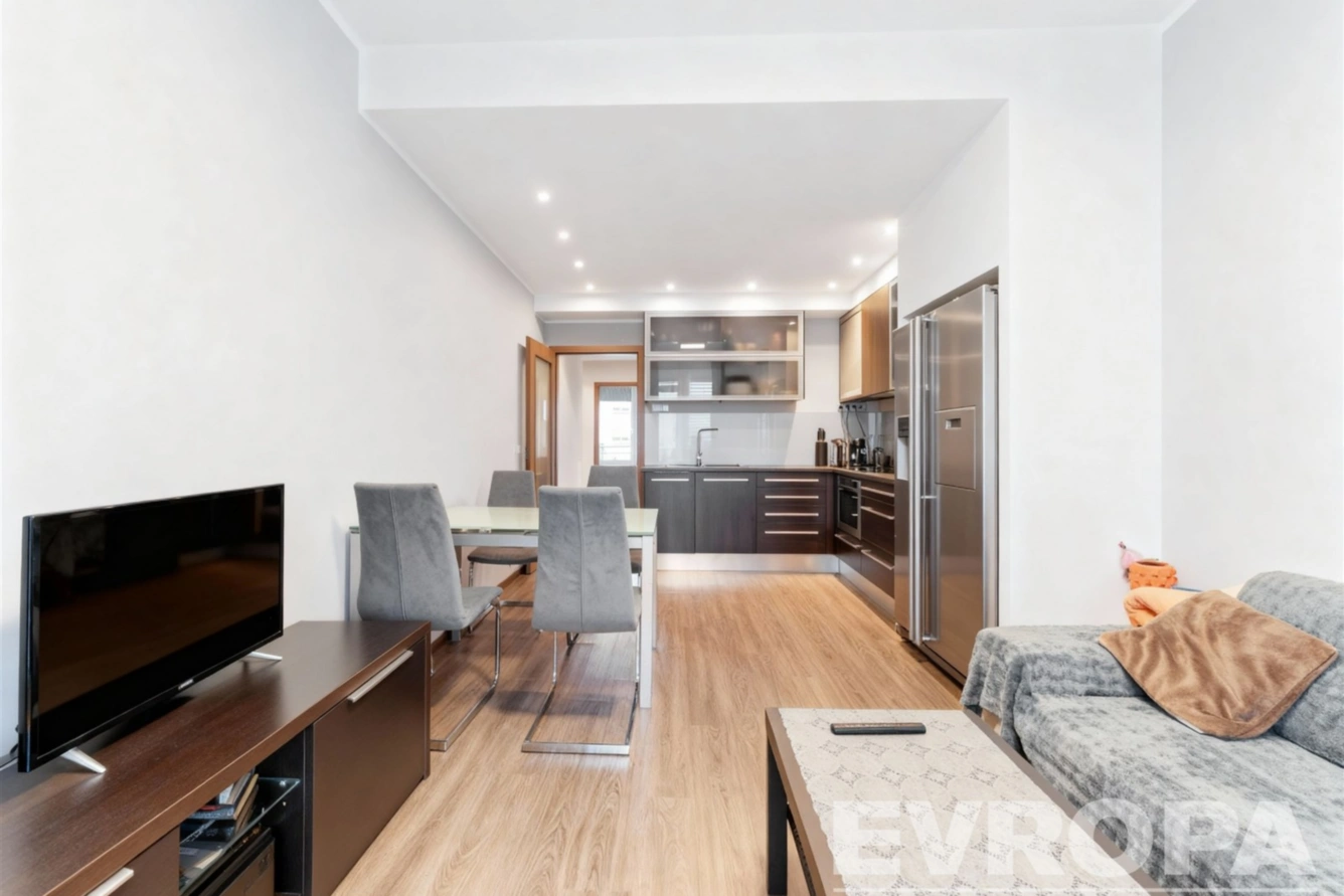 Byt je plně vybavený nábytkem i spotřebiči – k dispozici je americká lednice, myčka nádobí, trouba, varná deska a úložné prostory v podobě vestavěných skříní na míru v předsíni i ložnici. Díky tomu je byt ihned připraven k pohodlnému bydlení bez dalších investic.