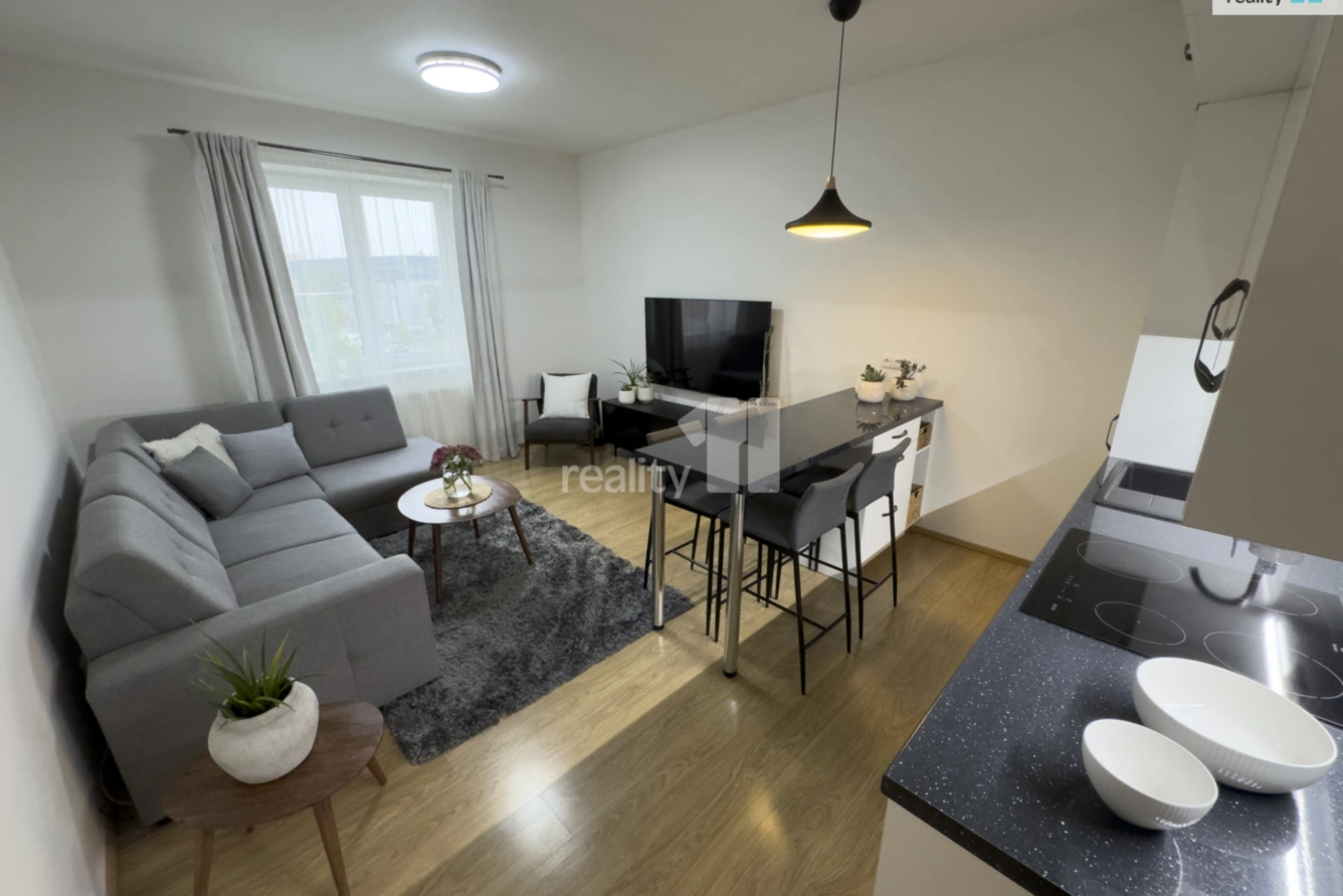 Minimalistický interiér bytu podtrhuje elegantní a nadčasový design kuchyňského koutu. Byt má plastová okna, vinylové podlahy a v chodbě velké množství úložných prostor na míru (vestavěné skříně jsou z roku 2022). Moderní kuchyňská linka je vybavena vestavěnými spotřebiči.