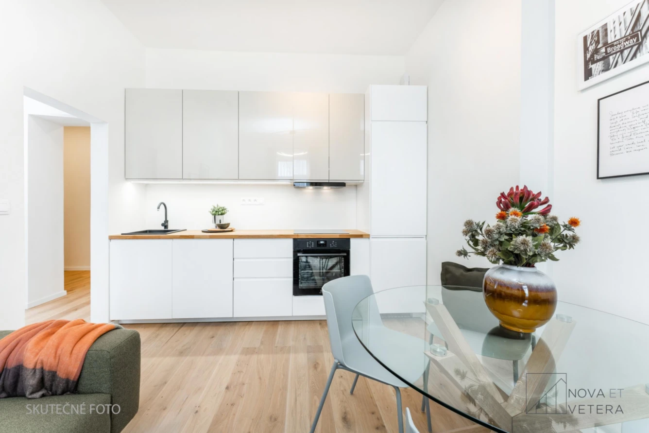 Byt právě prochází kompletní rekonstrukcí, která zahrnuje nové rozvody elektřiny, vody a odpadů, moderní podlahy, kvalitní obklady a dlažbu italské značky Marazzi, novou koupelnu a toaletu se sanitou Grohe a zcela novou kuchyňskou linku vybavenou vestavnými spotřebiči Gorenje s prodlouženou pětiletou zárukou. Nový majitel tak získá byt ve vysokém standardu, připravený k okamžitému nastěhování bez nutnosti dalších investic.
