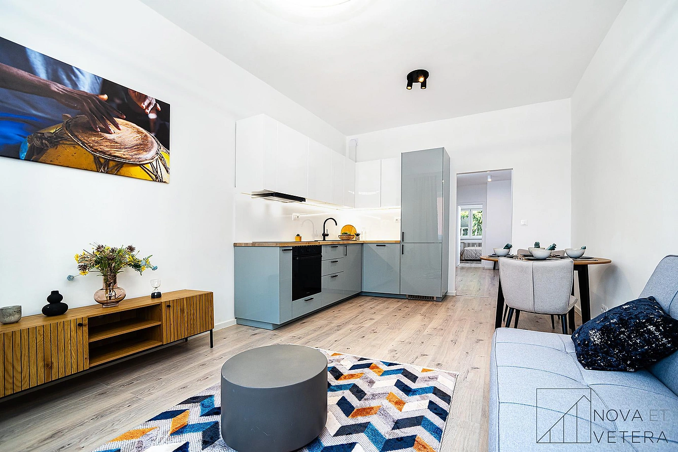 Byt právě prochází kompletní rekonstrukcí, která zahrnuje nové rozvody elektřiny, vody a odpadů, moderní podlahové krytiny, nové obklady a sanitu, interiérové dveře i celkovou obnovu vybavení. Součástí standardu je také kuchyňská linka se značkovými spotřebiči značky Gorenje s pětiletou zárukou.