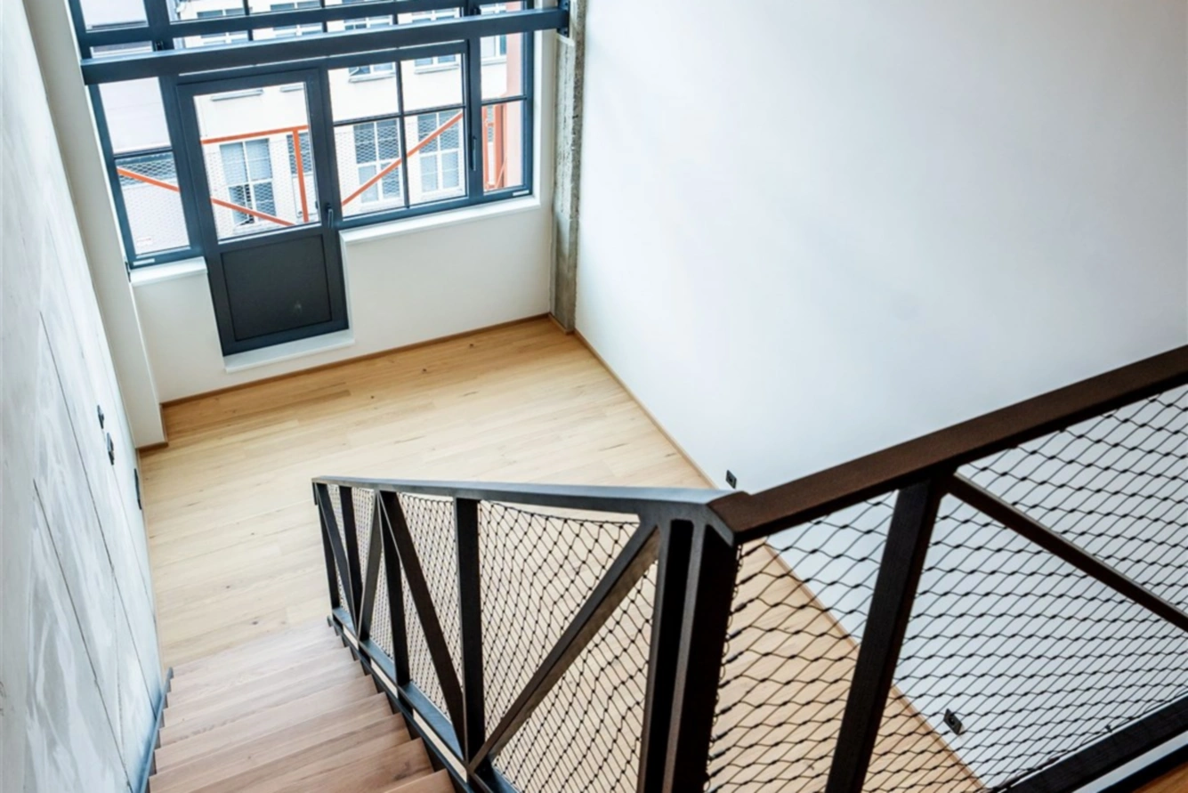 Vzdušné interiéry s vysokými stropy, velkoformátovými okny a přiznanými betonovými prvky vytvářejí osobitou atmosféru, která propojuje historii s moderním životním stylem.