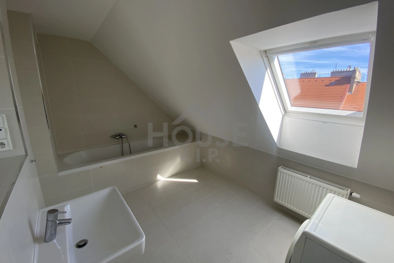 Nabízíme k prodeji prostorný a světlý mezonetový byt o dispozici 2+kk a výměře 72 m2, situovaný v podkroví (7. NP a 8. NP) zrekonstruovaného cihlového domu s výtahem. Byt je v osobním vlastnictví a nachází se v klidné lokalitě s výbornou dostupností do centra města.Dispozičně je byt rozdělen na dvě úrovně – ve spodním patře se nachází obývací pokoj s kuchyňským koutem, vstupní předsíň a samostatné WC. Po dřevěných vnitřních schodech se dostaneme do dalšího patra, kde se nachází další pokoj, prostorná koupelna s vanou a druhým WC s výhledem do vnitrobloku.Prostor schodiště dodává interiéru vzdušný a prostorný nádech. Celý prostor se orientován od východu na západ což zaručuje dostatek světla po většinu dne i díky prosklenému vikýři v obývacím pokoji směrem na východ. Byt má instalovanou klimatizaci, která zpříjemní letní měsíce.Příspěvky do fondu na činí 2.500 Kč měsíčně, spotřeba elektrické energie cca 1.500 Kč měsíčně. Společenství vlastníků jednotek funguje bez problémů a dobře se stará o celý dům. Byt se nachází v 7. patře s moderním výtahem Schindler.Byt je umístěn v tradiční vinohradské zástavbě jen 5 minut chůze od OC Flóra a nabízí tak rychlé dopravní spojení i občanskou vybavenost.Byt je ideální pro jednotlivce, páry nebo jako investice k pronájmu.