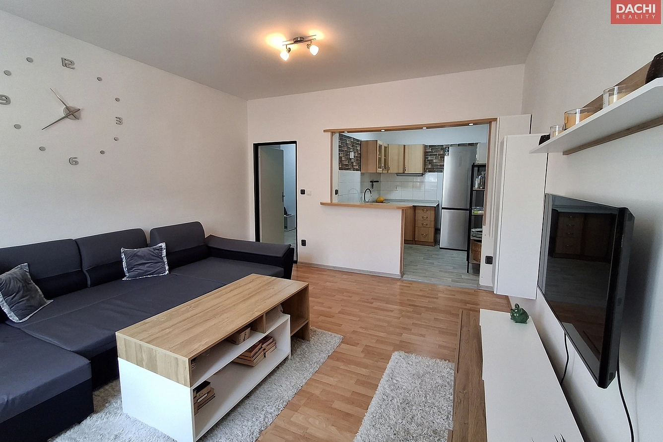 Byt prošel kompletní rekonstrukcí, a to s citem pro detail. Najdete tu dvě neprůchozí místnosti, kuchyňský kout, moderní koupelnu se sprchovým koutem, dvě oddělené chodby – jednu vstupní s praktickým úložným prostorem a druhou propojující celý byt.