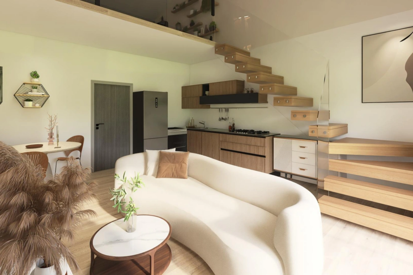 K prodeji je novostavba bytu 2+kk s předzahrádkou a vyhrazeným parkováním před domem, a to vše v komorním rezidenčním projektu, který vzniká v ulici Blanická poblíž centra města Svitavy. Jedná se o mezonetový byt s celkovou plochou 60,56 m2. Denní zónu bytu tvoří otevřený prostor s kuchyní, jídelnou a obývacím pokojem. Součástí je také předsíň, technická místnost, koupelna a samostatná toaleta. Z přízemí lze francouzskými dveřmi vstoupit na předzahrádku nebo je schodištěm zajištěno propojení s klidovou částí bytu v podkroví - ložnicí s ochozem, díky kterému je celý prostor bytu vzdušný a světlý. Jedním z velkých benefitů je předzahrádka o výměře 75,86 m2, která poskytne novým majitelům skvělé místo pro relaxaci, grilování či malou zahrádku. Vytápění a ohřev vody zajišťuje centrální plynový kotel. Projekt jednopodlažního domu s obytným podkrovím zahrnuje pouze 4 bytové jednotky s vlastním vchodem. Termín dokončení je naplánován na léto 2026.