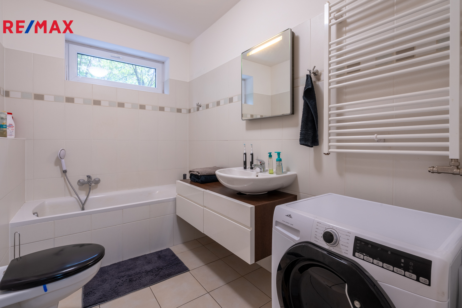 koupelna s vanou a umyvadlem,