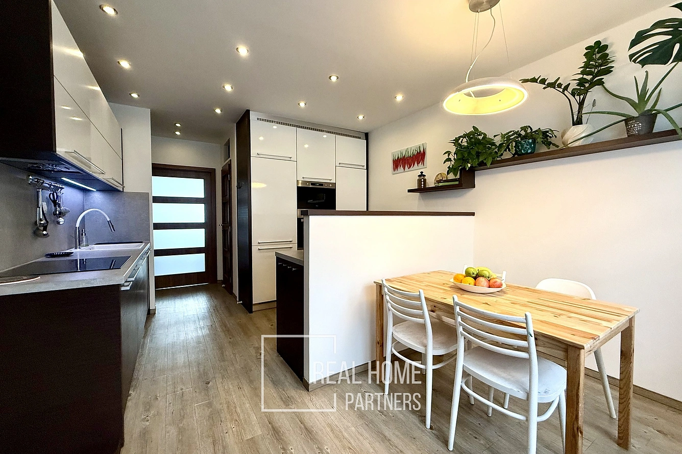 Hledáte ideální rodinné zázemí? Perfektní byt 3+1 v Brně-Slatině s veškerým komfortem!Představte si, že se svou rodinou bydlíte v prostorném bytě, kde už na nic nemusíte myslet. Tento kompletně zrekonstruovaný byt 3+1 o ploše 70 m2 na ulici Kroměřížská v Brně-Slatině je jako stvořený pro mladé páry nebo rodiny, které chtějí mít klid, pohodlí a zároveň skvělou dostupnost.Byt nabízí moderní a kvalitní vybavení na míru – odhlučněné stropy, vinylové podlahy, podlahové vytápění v koupelně a designovou kuchyni od firmy Bednář Interiér. Dispozice je ideální pro rodinu: ložnice s vestavěnou skříní, dětský pokoj, obývací pokoj s lodžií a navíc i malá pracovna.- ložnice 12 m2 - okna na jih- obývací pokoj 17 m2, s lodžií 2,3 m2 - okna na jih- kuchyně s jídelnou 15,7 m2 otočená na sever- dětský pokoj 10,2 m2 otočený na sever- koupelna 3,2 m2- toaleta 1,4 m2- pracovna 2,2 m2- předsíň se šatnou 8,3 m2+ 2x sklepy 2 m2A teď k té lokalitě: Brno-Slatina je skvělá čtvrť pro rodiny. Máte tu veškerou občanskou vybavenost na dosah – školy, školky, obchody, a navíc skvělou dopravní dostupnost do centra města i rychlé napojení na dálnici. Takže ať už potřebujete vyrazit do práce nebo na rodinný výlet, všechno máte po ruce.Cena za tento krásný byt včetně dvou sklepů je 7 700 000 Kč. Přijďte se podívat a přesvědčit se, že tohle může být váš nový domov!