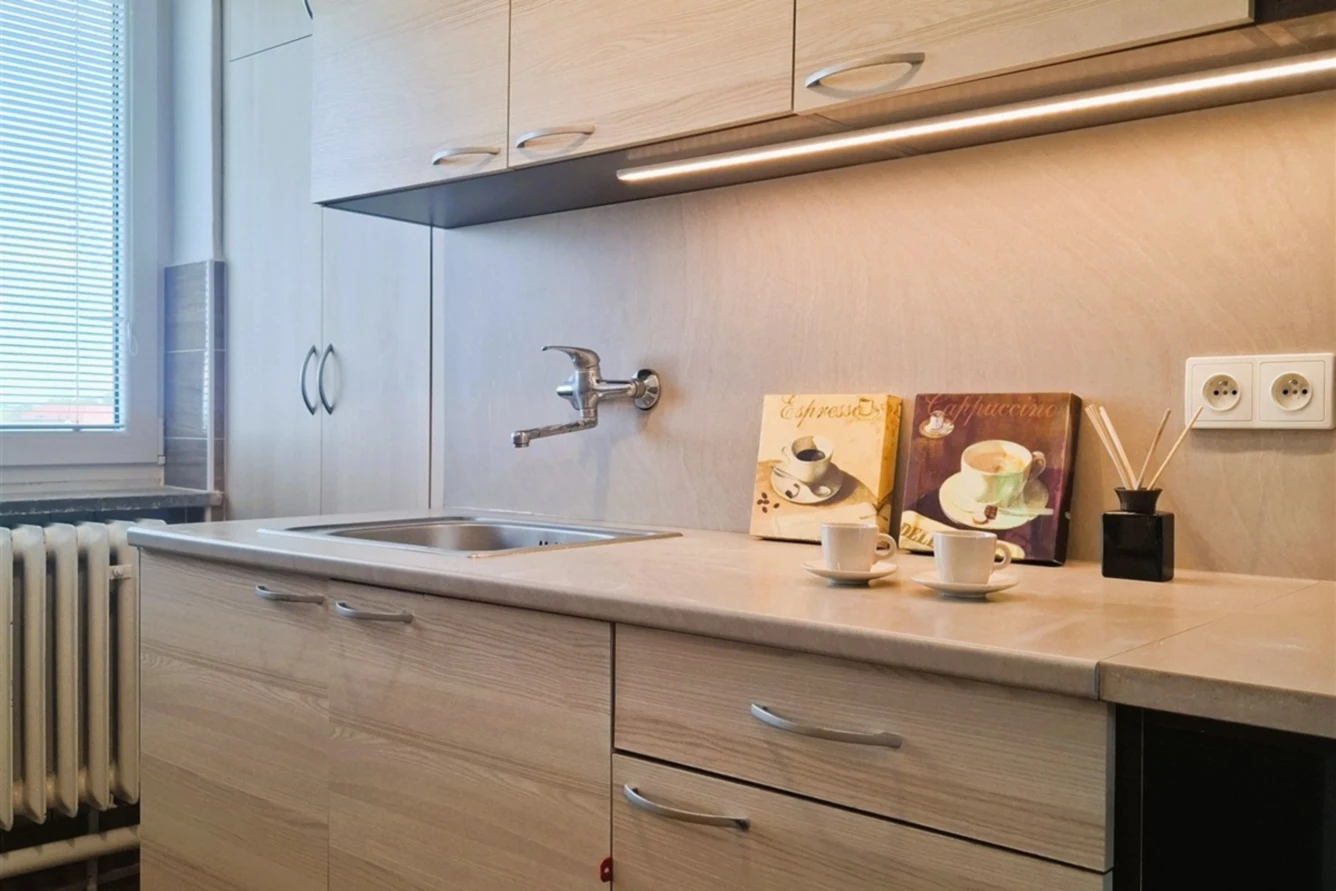 Vytápění je řešeno elektrickým kotlem, ohřev vody zajišťuje bojler. Měsíční náklady na provoz bytu jsou velmi příznivé – přibližně 4 000 Kč.