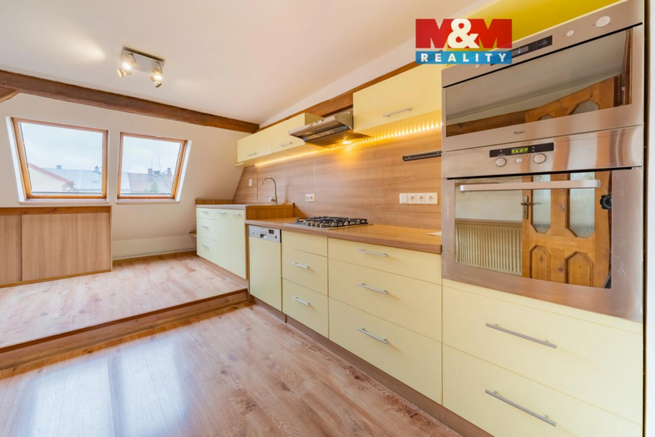Prodej podkrovního bytu 3+1 ve 4.patře cihlového domu nedaleko centra města. Byt má výměru 140m2. Velmi prostorné místnosti, koupelna s vanou a sprchovým koutem. Vytápění a ohřev vody přes plynový kotel. Velmi nízké náklady na bydlení, fond oprav cca. 1.700,- Kč. Kuchyňská linka včetně vestavěných spotřebičů. Součástí prodeje jsou i vestavěné skříně v předsíni. K bytu patří sklep o výměře 37m2. Více informací u makléře.