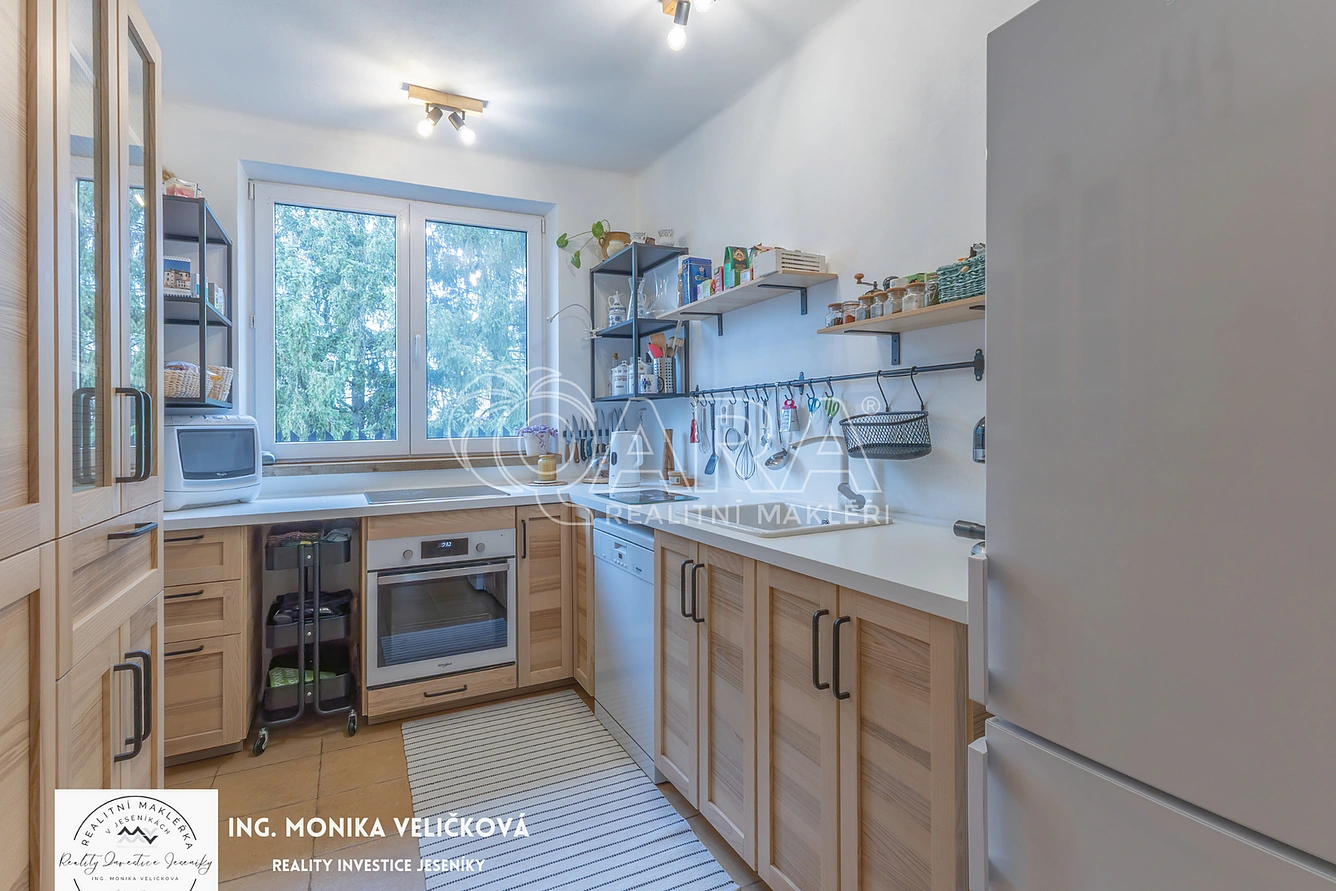 Byt je velmi slunný a světlý díky příjemné orientaci a velkým oknům, které zajišťují dostatek denního světla po celý den. Dominantou obývacího pokoje jsou kamna, která přinášejí nejen příjemnou atmosféru, ale také možnost úsporného vytápění v chladnějším období. V kuchyni a na chodbě je instalováno podlahové vytápění. Ohřev teplé vody je řešen elektrickým bojlerem.