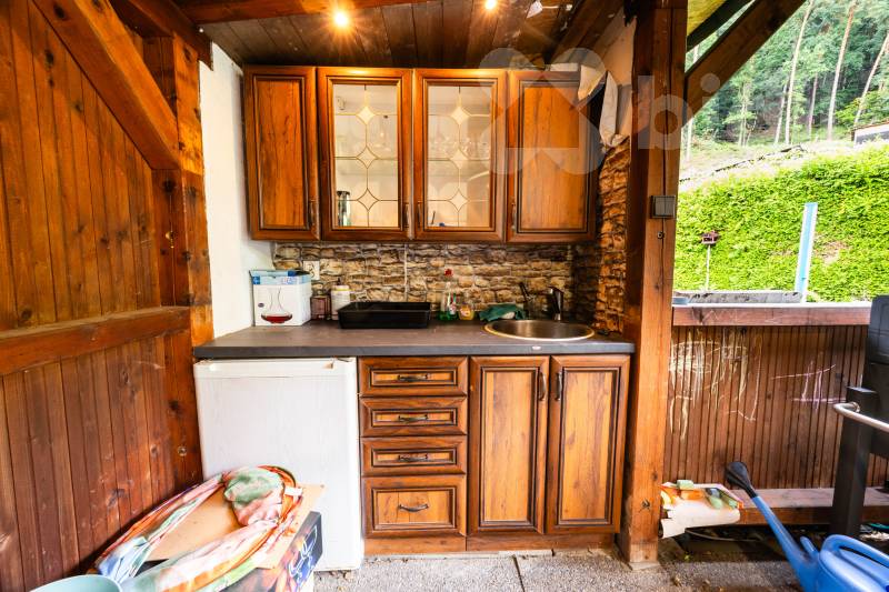 Součástí bytu je také soukromá zahrada o rozloze 165 m2, ideální pro odpočinek, rodinné grilování nebo hraní dětí. Z kuchyně je přímý výhled na zahradu, což ocení zejména rodiny s dětmi. Velkým plusem je i zavedená elektřina a voda v přístřešku.